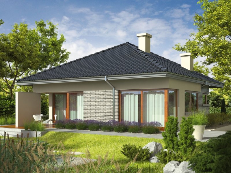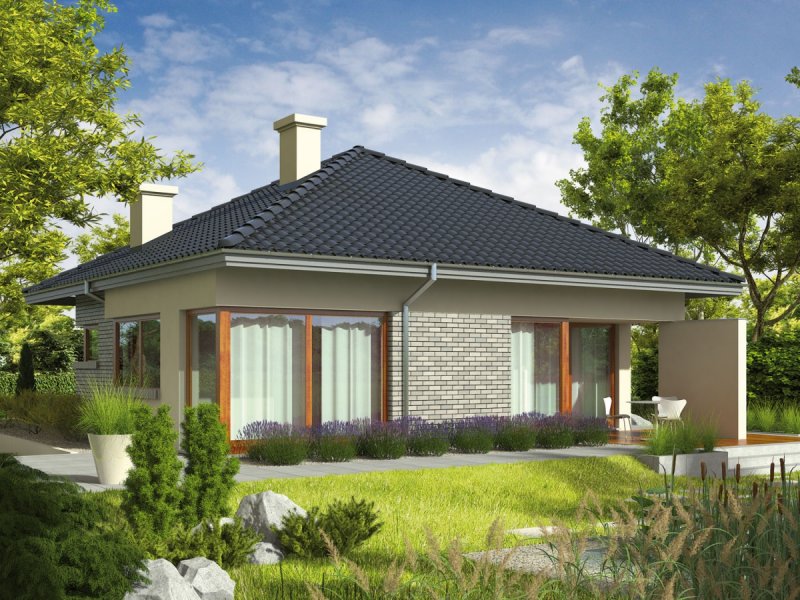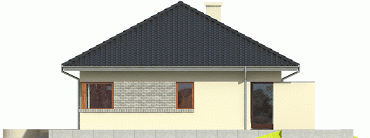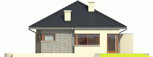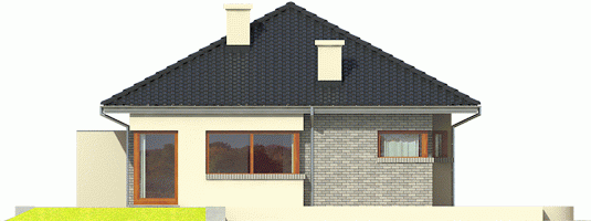 Dom zaprojektowany w technologii murowej ze stropem gęstożebrowym. Dach o konstrukcji drewnianej pokryto dachówką cementową IBF. Więźba dachowa dostępna również w systemie prefabrykacji drewnianej. Elewacje wykończono tynkiem mineralnym i okładziną kamienną lub cegłą klinkierową. Stolarka okienna drewniana lub PVC.