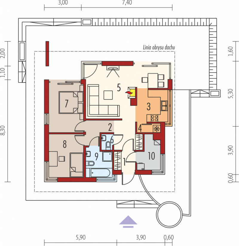 - Kąt nachylenia dachu 30.00°