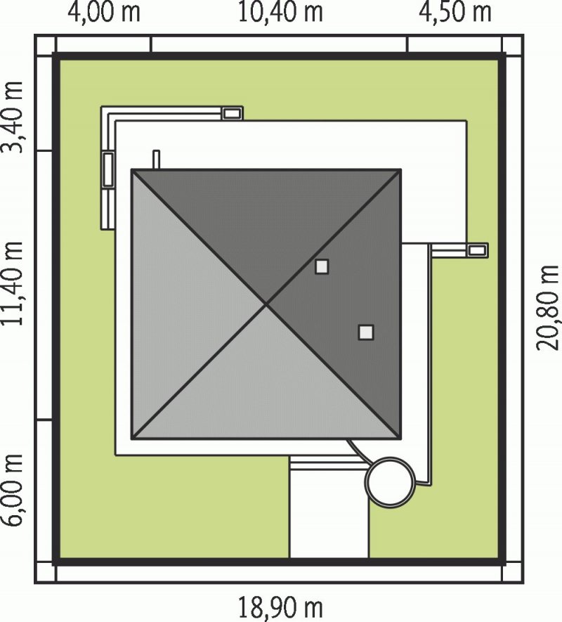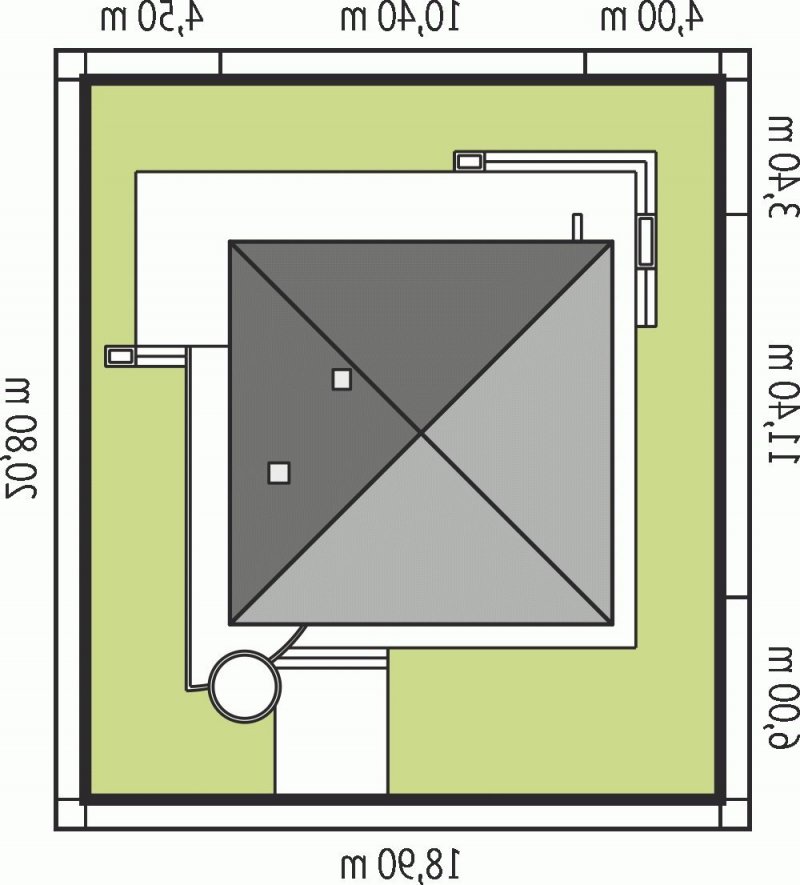 - Min. wymiary działki 18.40x17.80 m
