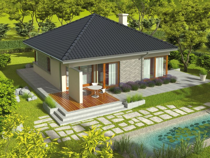 Dom parterowy, niepodpiwniczony. Przeznaczony dla 2-3-osobowej rodziny. Układ funkcjonalny pomieszczeń pozwala na optymalne wykorzystanie przestrzeni. Strefa dzienna oraz nocna znajdują się na jednej kondygnacji. Dzięki przemyślanym rozwiązaniom są one wyraźnie rozdzielone, co sprawia, że wnętrze domu jest niezwykle komfortowe. Strefę dzienną tworzą: salon, jadalnia oraz kuchnia z praktyczną spiżarnią. Strefa nocna to dwie sypialnie i łazienka. Dodatkowo w domu znalazło się miejsce na pomieszczenie gospodarcze oraz małą toaletę. Tori II to doskonała propozycja dla ceniących przytulne wnętrza. Ogromnym atutem domu jest duża liczba okien, które rozświetlają wnętrze, napełniając przestrzeń dobrą, słoneczną energią. Biała elewacja podkreślona okładziną kamienną sprawia, że klasyczna bryła domu nabiera nowoczesnego wyrazu. Ciekawie zaprojektowany taras stanowi dodatkową, nastrojową strefę wypoczynkową. Istnieje możliwość adaptacji poddasza na strych.