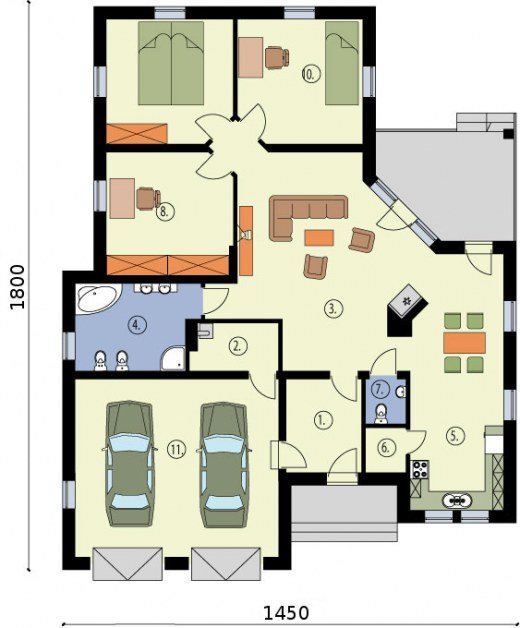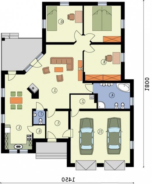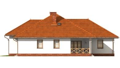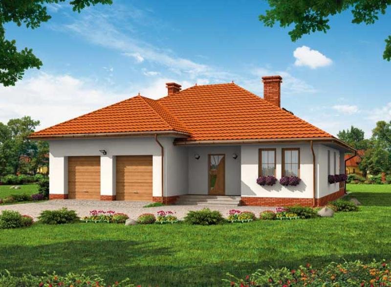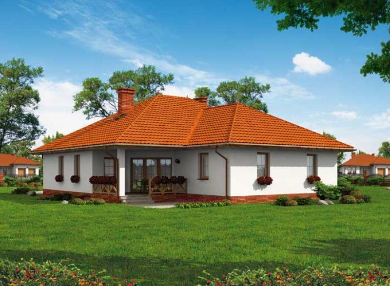 WENECJA- dom jednorodzinny W przypadku tego projektu mamy do czynienia z jednorodzinnym domem parterowym, wyposażonym w dwustanowiskowy garaż. Wszelkie detale architektoniczne zostały zestawione z dużym poczuciem smaku i harmonii. Bryła garażu i dom są ze sobą idealnie zespojone. Od południa znajduje się malowniczy ganek, który świetnie współgra z garażem przynosząc na myśl domy wznoszone na amerykańskich przedmieściach. Z wiatrołapu jest przejście do przestronnego garażu, połączonego z kotłownią. Największym pomieszczeniem w domu jest pokój dzienny, przedzielony stylowym kominkiem, w jego sąsiedztwie znajduje się niewielka toaleta, za kominkiem usytuowana jest jadalnia oraz aneks kuchenny, wyposażony także w spiżarnię. W północnej części domu znajdują się trzy pokoje o podobnej wielkości ok. 15 m2. Poprzedza je większa łazienka, w której można zażyć kąpieli. Na wschodniej ścianie znajduje się taras, który z pewnością we wiosenne, letnie oraz jesienne wieczory będzie miejscem niejednej uroczystości rodzinnej, a także śniadania, obiadu, czy kolacji. Wenecja to wymarzony dom dla nowoczesnej rodziny.