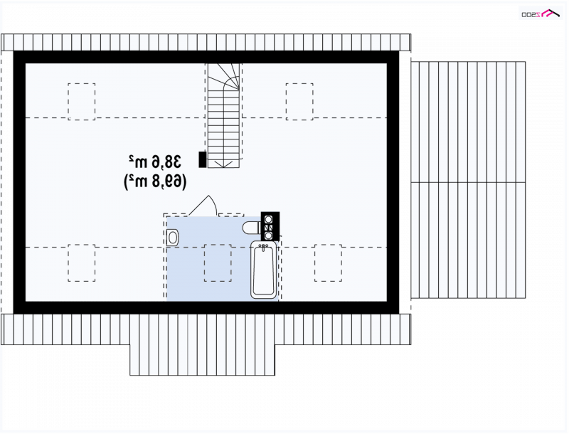 W projekcie istnieje możliwość zaadaptowania poddasza na które prowadzą schody z salonu.