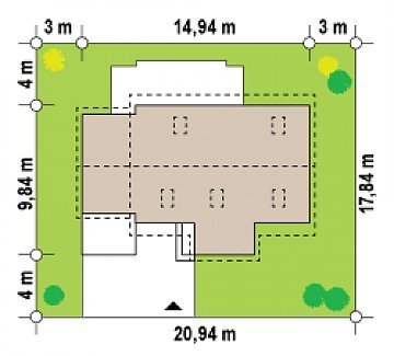 - Min. wymiary działki 17.84x22.94 m
