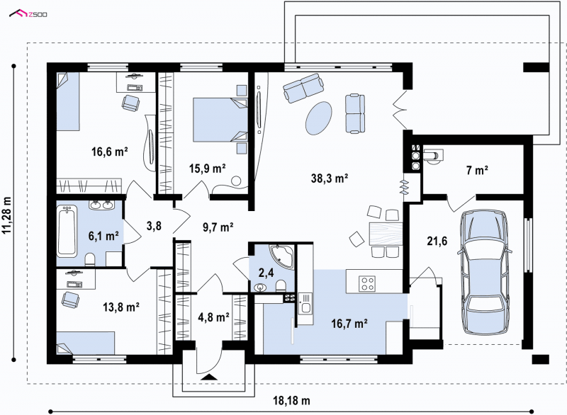 Z 123 to propozycja dla osób ceniących urok i funkcjonalność domków parterowych. Urzeka lekkością formy i dbałością o detale.