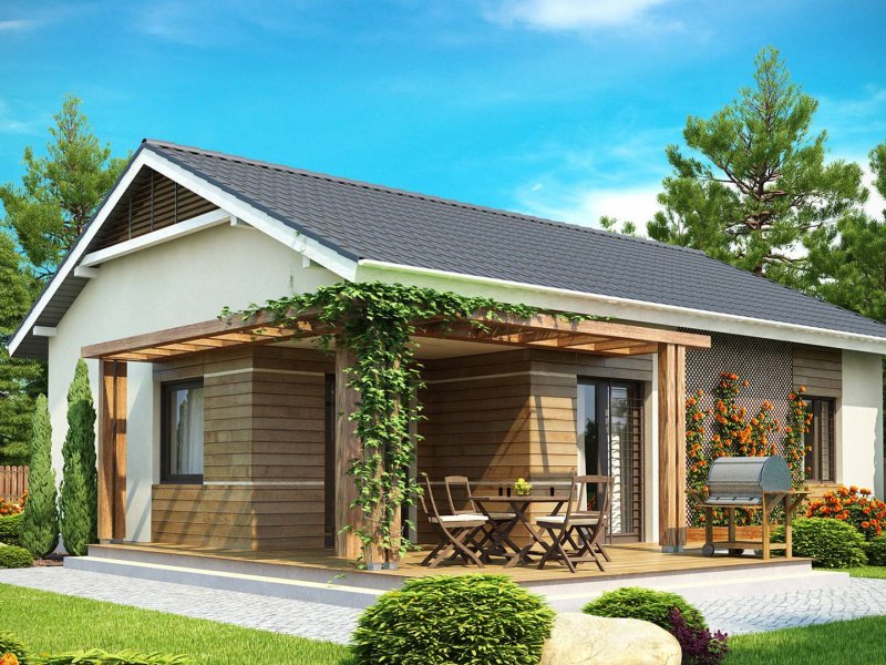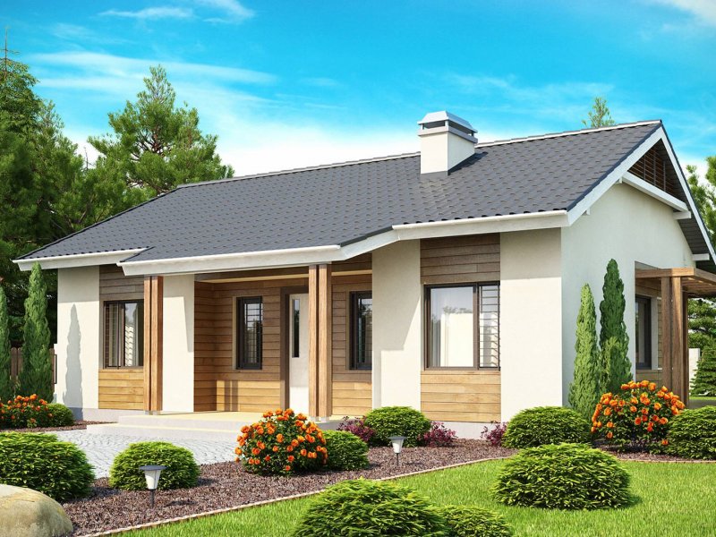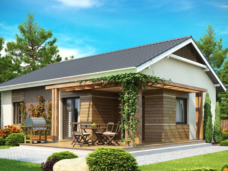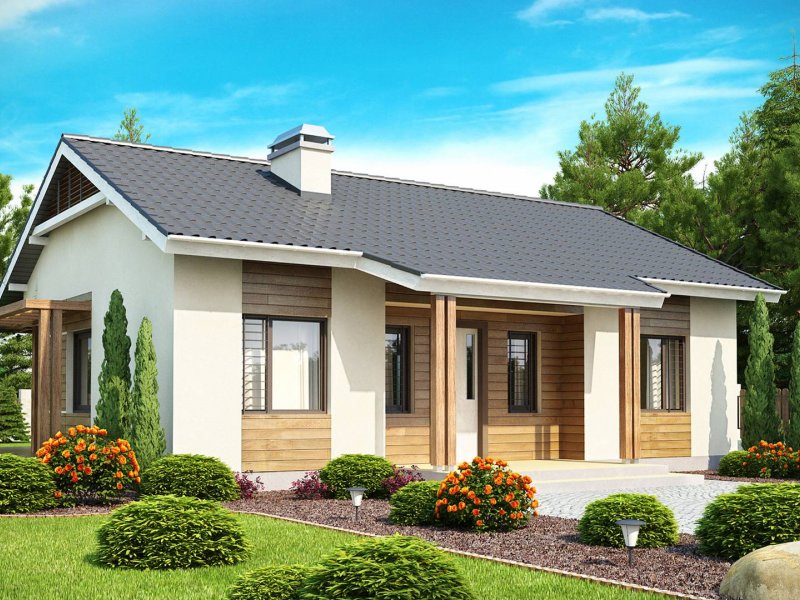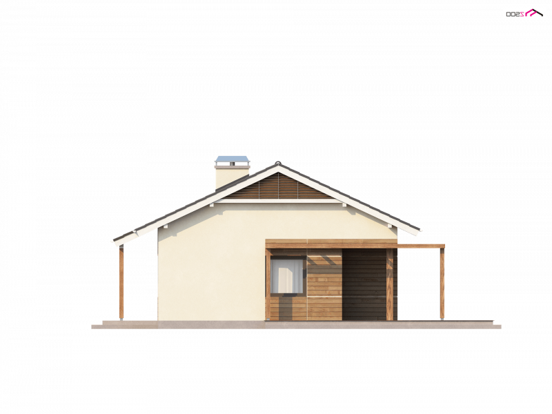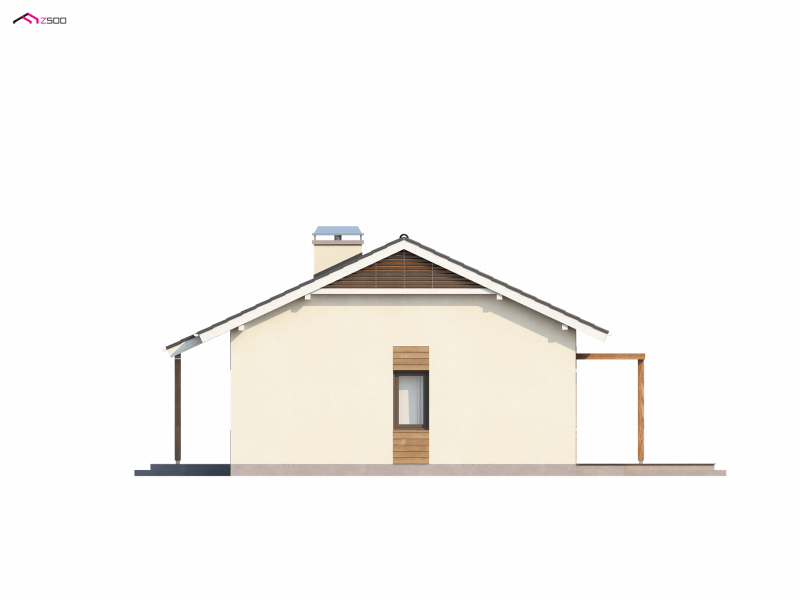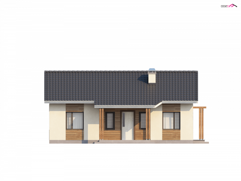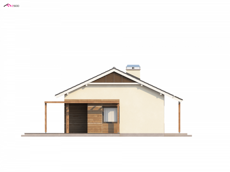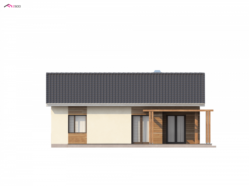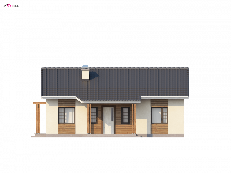 Z136 to propozycja dla osób szukających niewielkiego i funkcjonalnego domu parterowego. Naturalne, drewniane okładziny elewacji świetnie komponują się z popielatą blachodachówką i dodają mu uroku. Podcień wejściowy zaakcentowany jest wysuniętym zadaszeniem wspartym na drewnianych słupach.