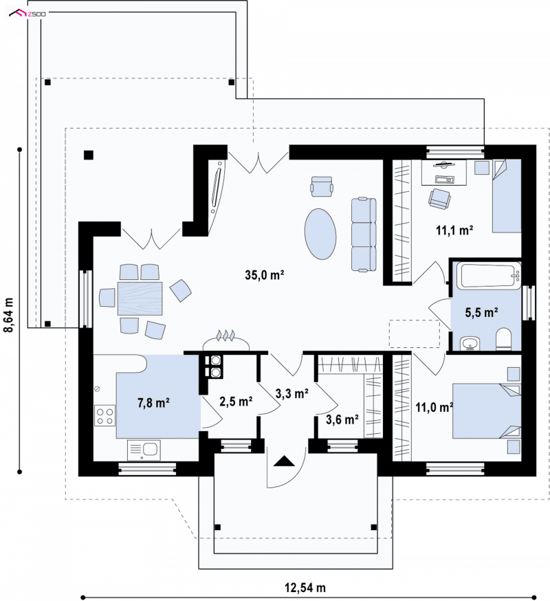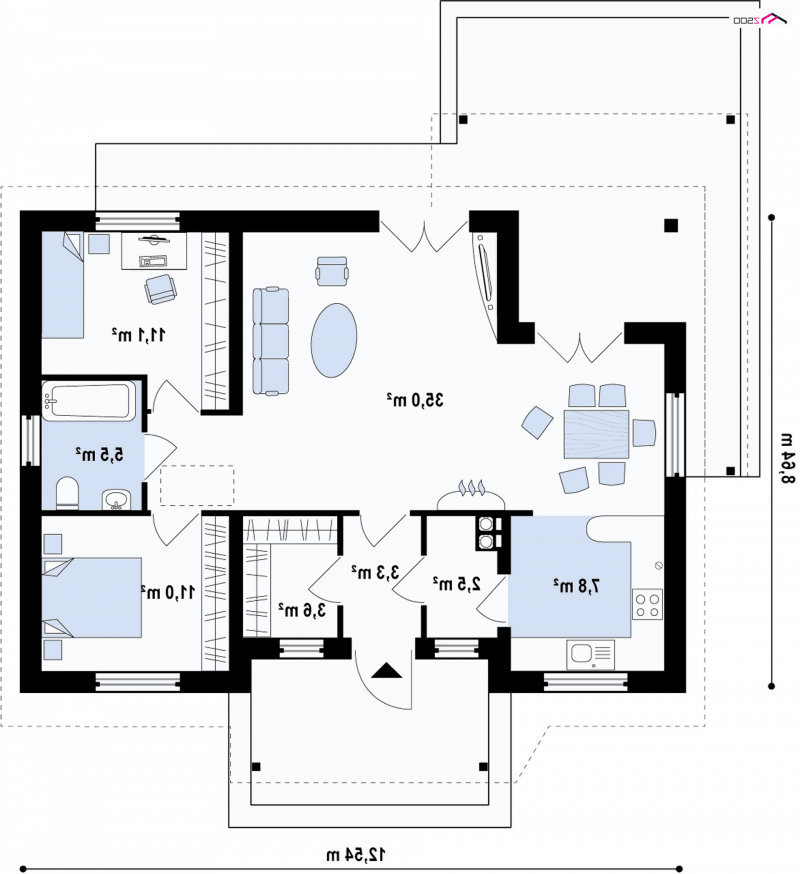 Projekt Z136 spodoba się wszystkim zwolennikom pomieszczeń na jednym poziomie.