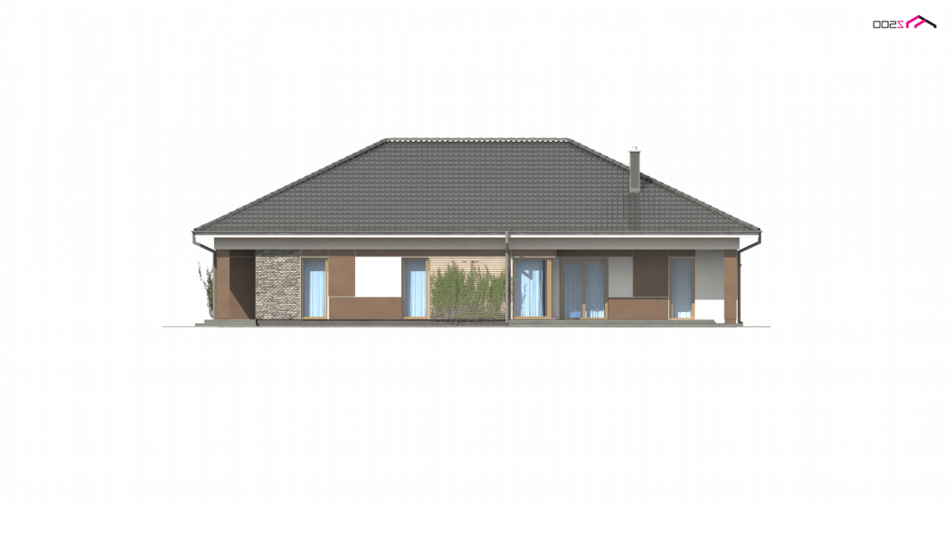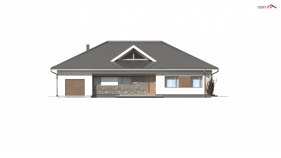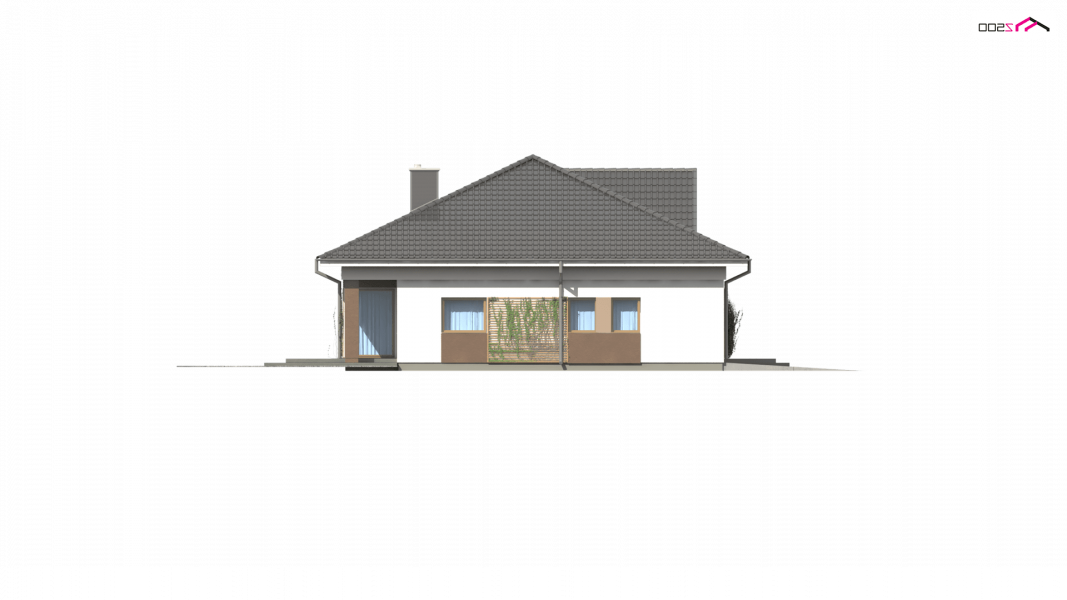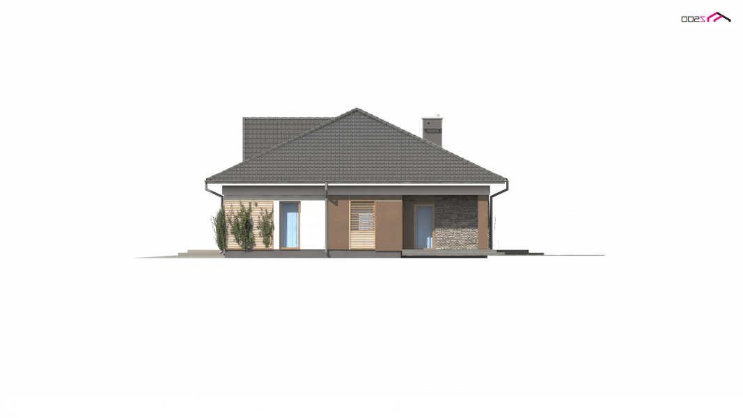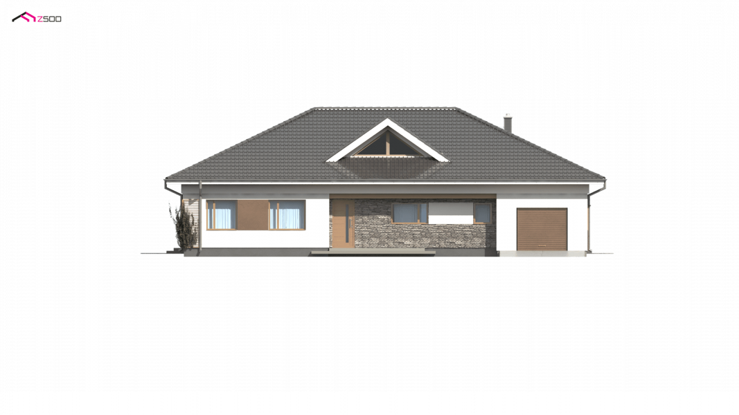 Z153 to zgrabny parterowy dom z garażem jednostanowiskowym z prawej strony. Klasyczne elementy elewacji wpływają na jego atrakcyjny i elegancki wygląd.