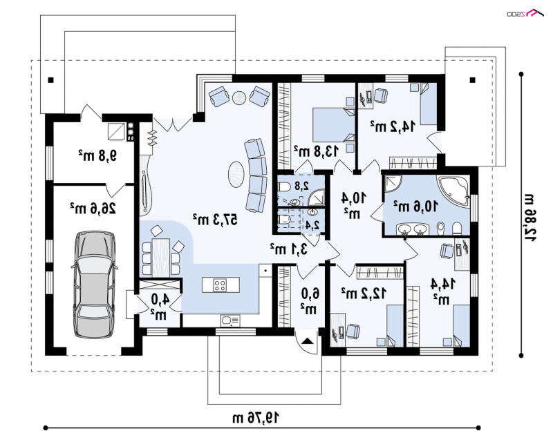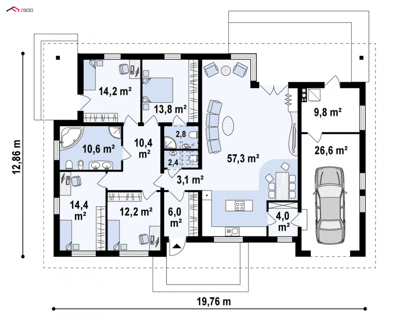 Z153 to funkcjonalny i praktyczny projekt domu z rozwiązaniem pomieszczeń na jednym poziomie.