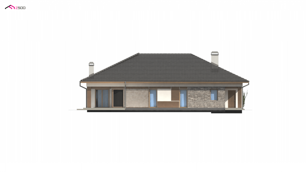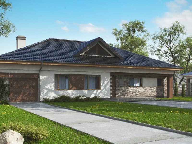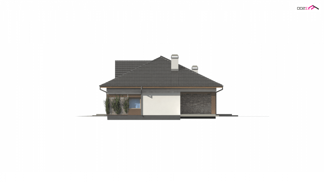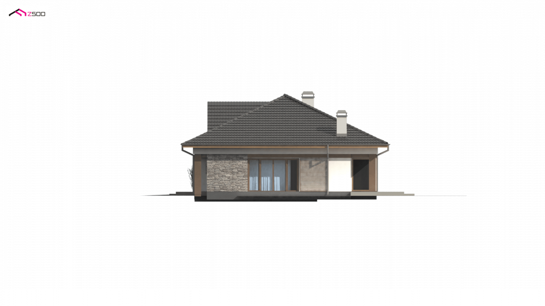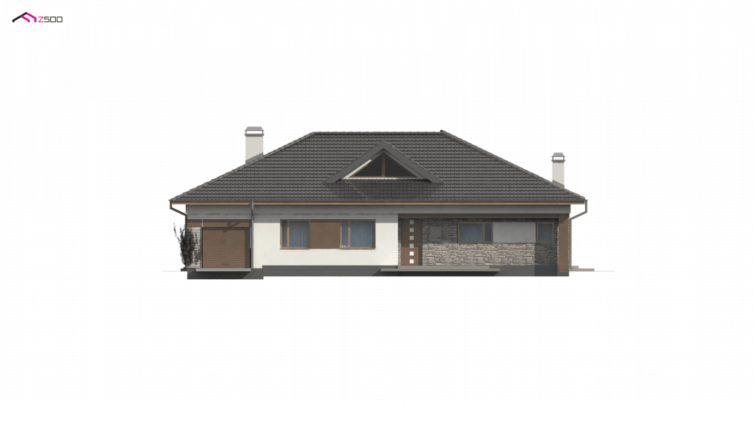 Z153 GL to zgrabny parterowy dom z garażem jednostanowiskowym z lewej strony. Klasyczne elementy elewacji wpływają na jego atrakcyjny i elegancki wygląd.
