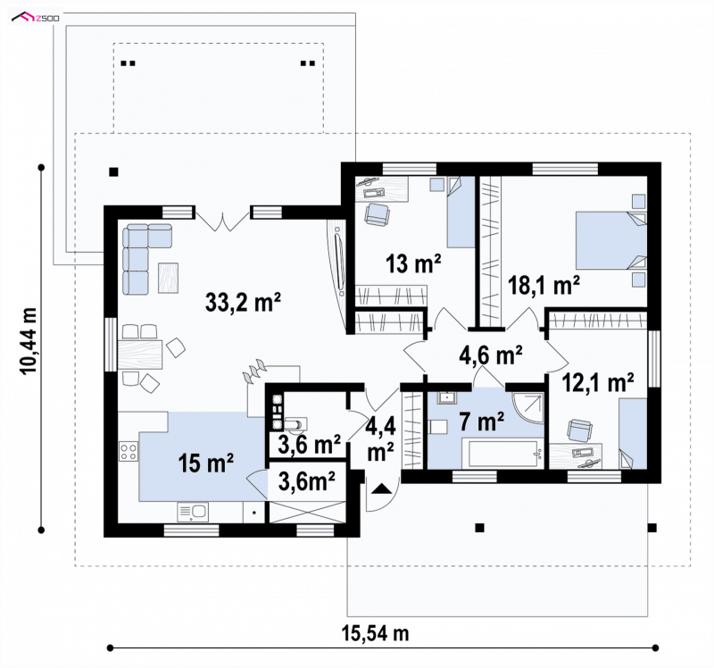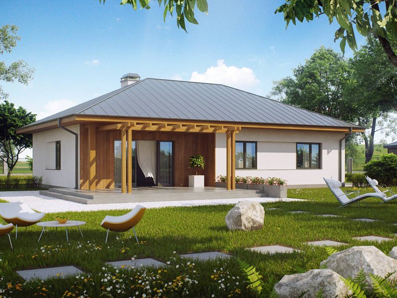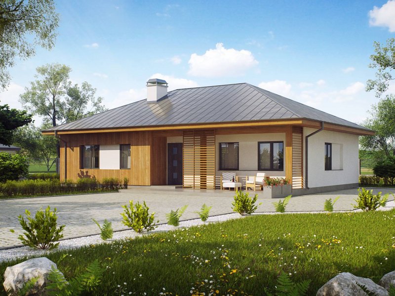 Z176 to funkcjonalny i praktyczny projekt domu.Klasyczne elementy elewacji wpływają na jego atrakcyjność zewnętrzną, a całość tworzy zwartą i oryginalną formę. Jest to idealna propozycja dla osób poszukujących niewielkiego i wygodnego domu parterowego.