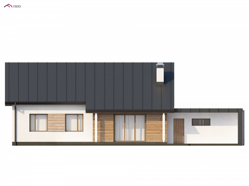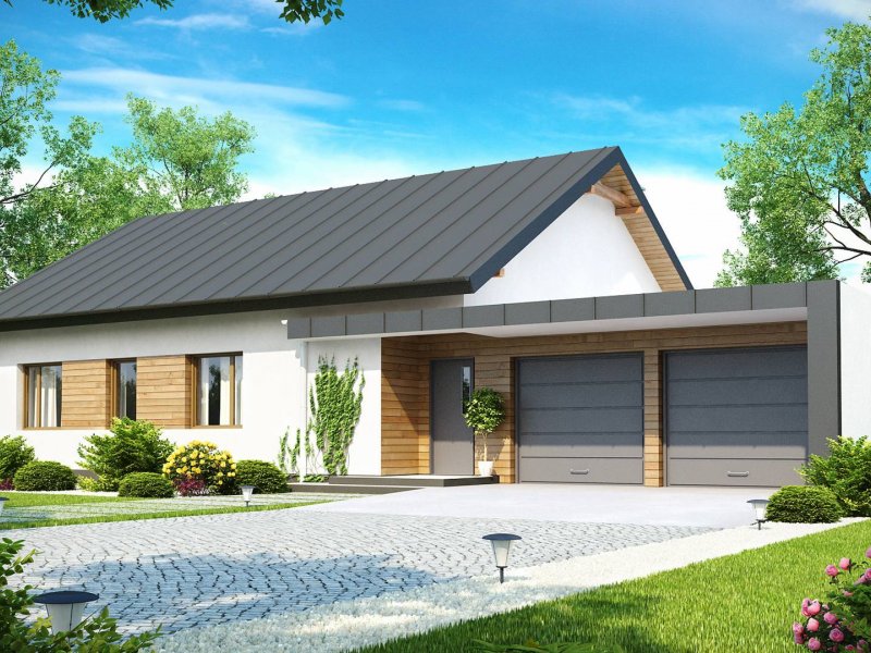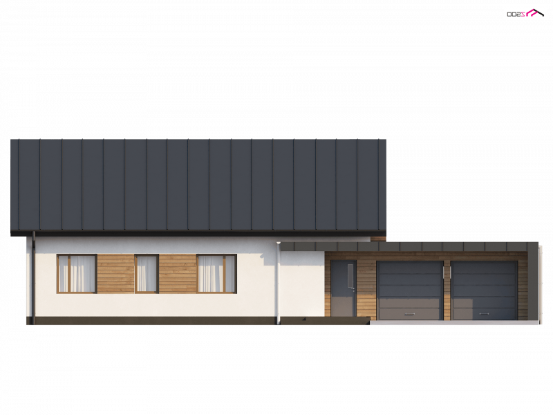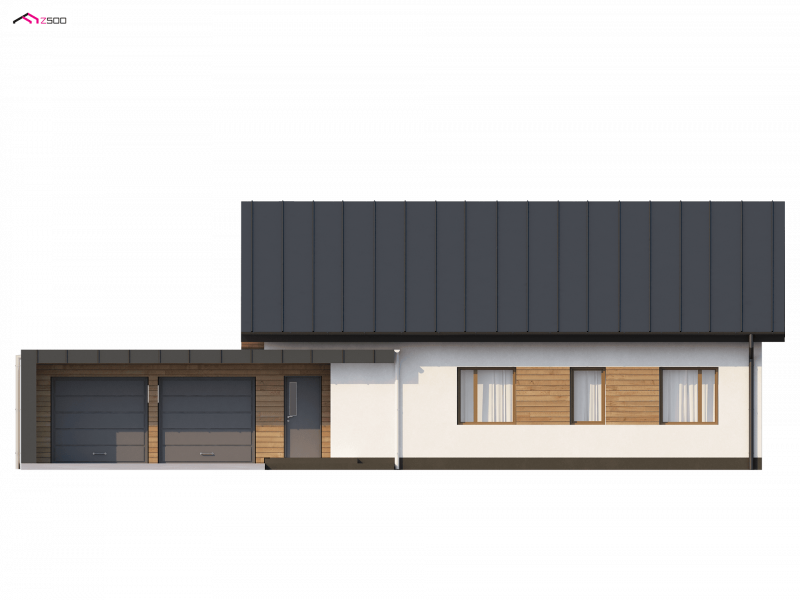 Z182 to dom parterowy we współczesnym stylu. Główną zaletą jest duży garaż dwustanowiskowy z bezpośrednim przejściem do domu oraz możliwość powiększenia o poddasze użytkowe.