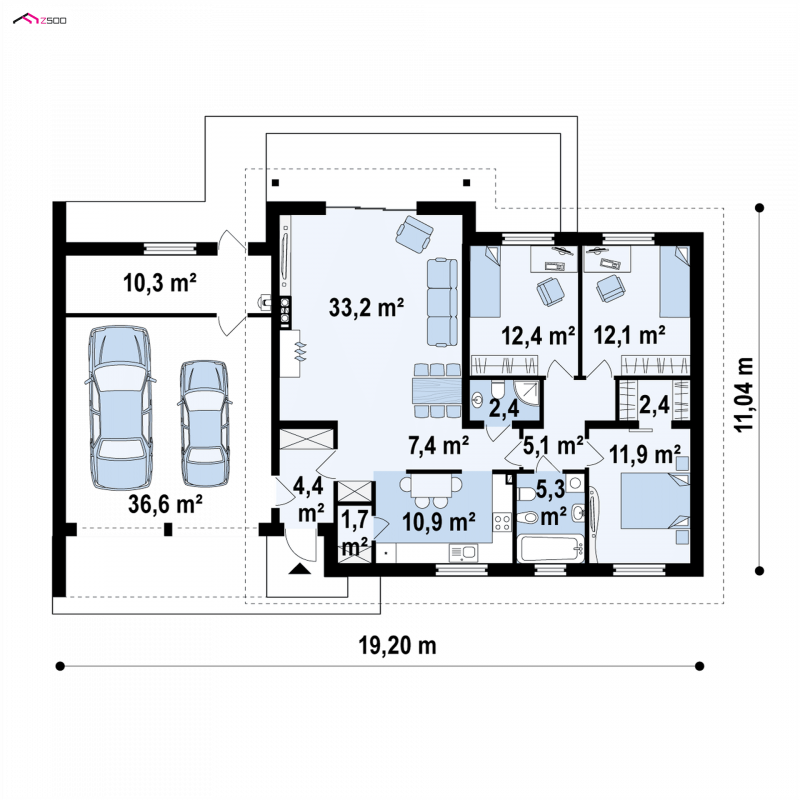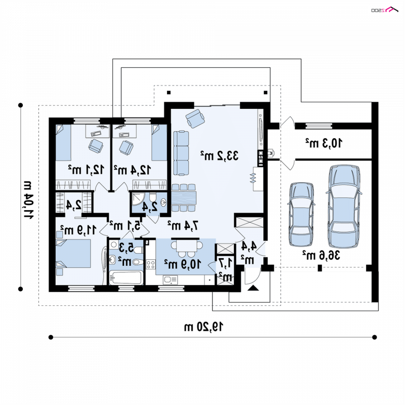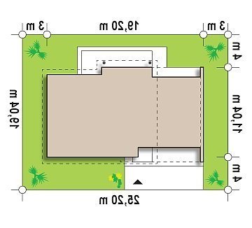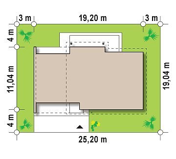 - Min. wymiary działki 19.04x25.20 m