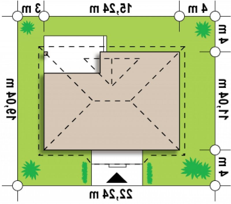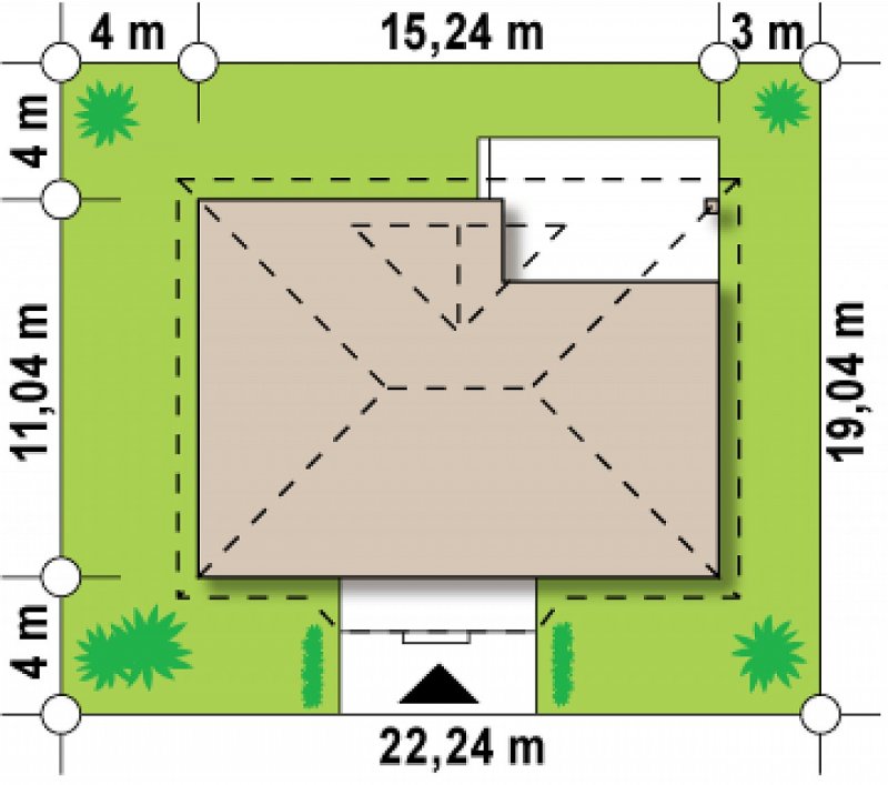 - Min. wymiary działki 22.24x19.04 m