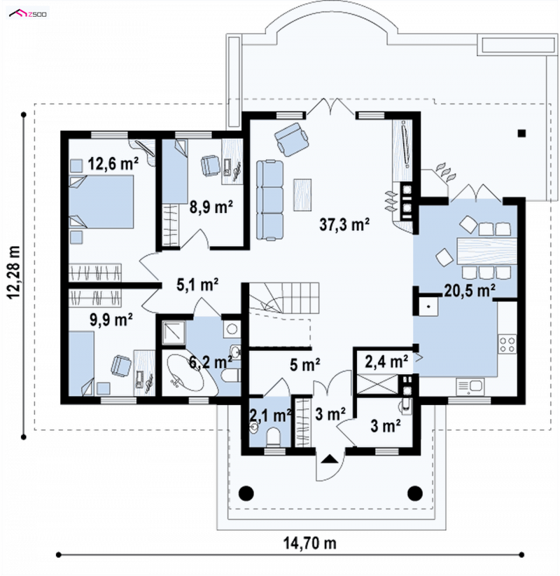 Projekt Z2f+ D jest wersją szkieletową projektu, który dodatkowo został powiększony w części frontowej.