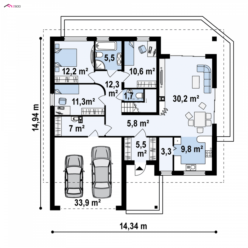 Projekt Z202 jest optymalną propozycją dla osób szukających wygodnego i praktycznego domu. Pełna gama pomieszczeń sprawia, że znajdzie się tu miejsce dla każdego.