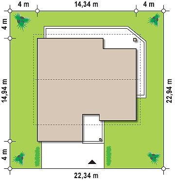 - Min. wymiary działki 22.94x22.34 m