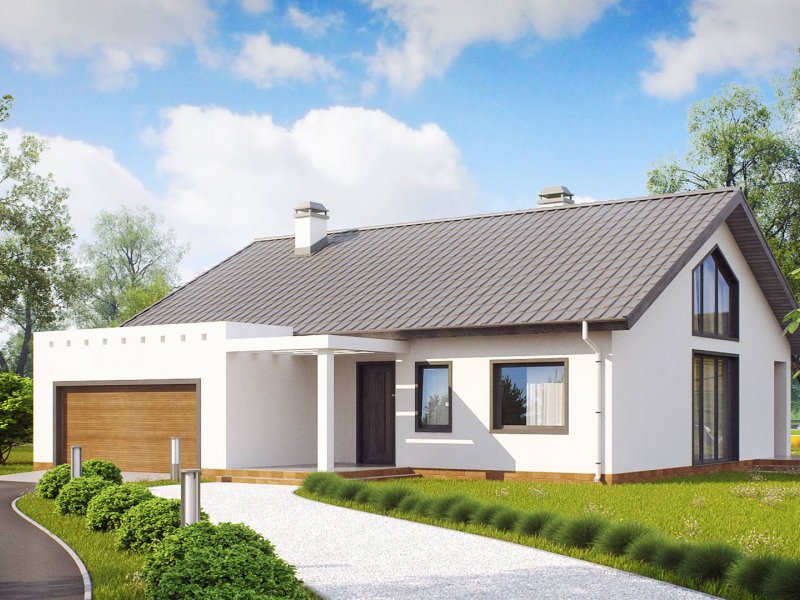 Projekt Z202 jest jednorodzinnym domem parterowym z możliwością zaadaptowania poddasza. Funkcjonalny układ pomieszczeń zapewni komfort codziennego użytkowania.