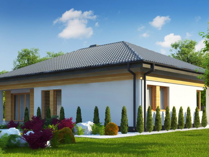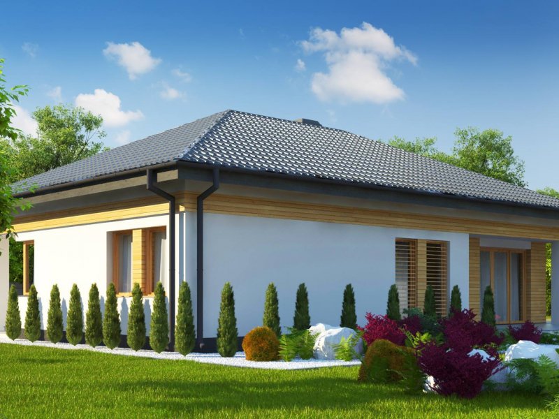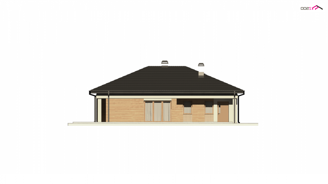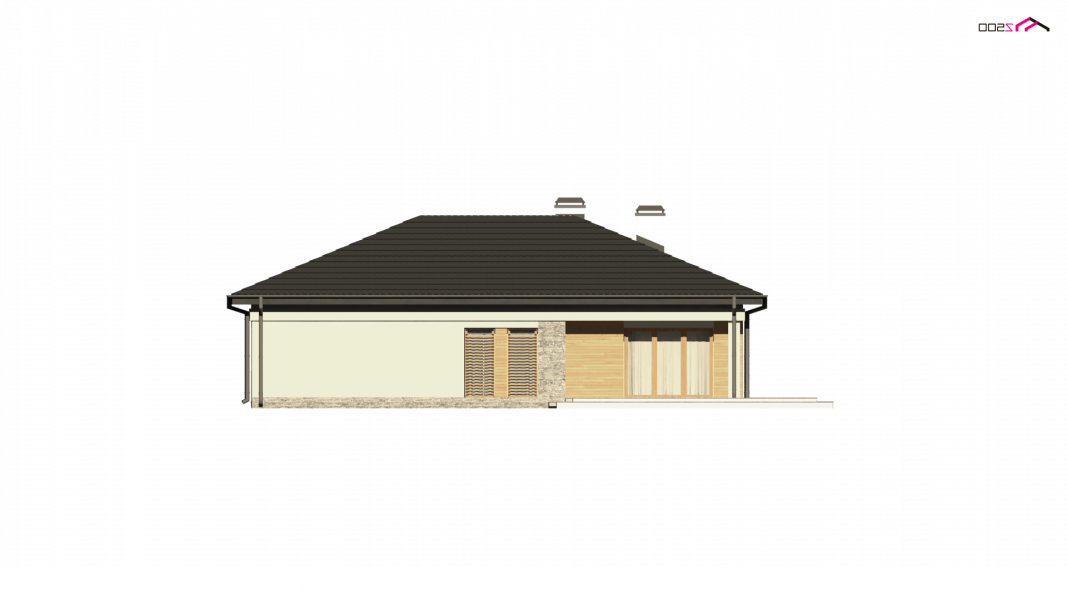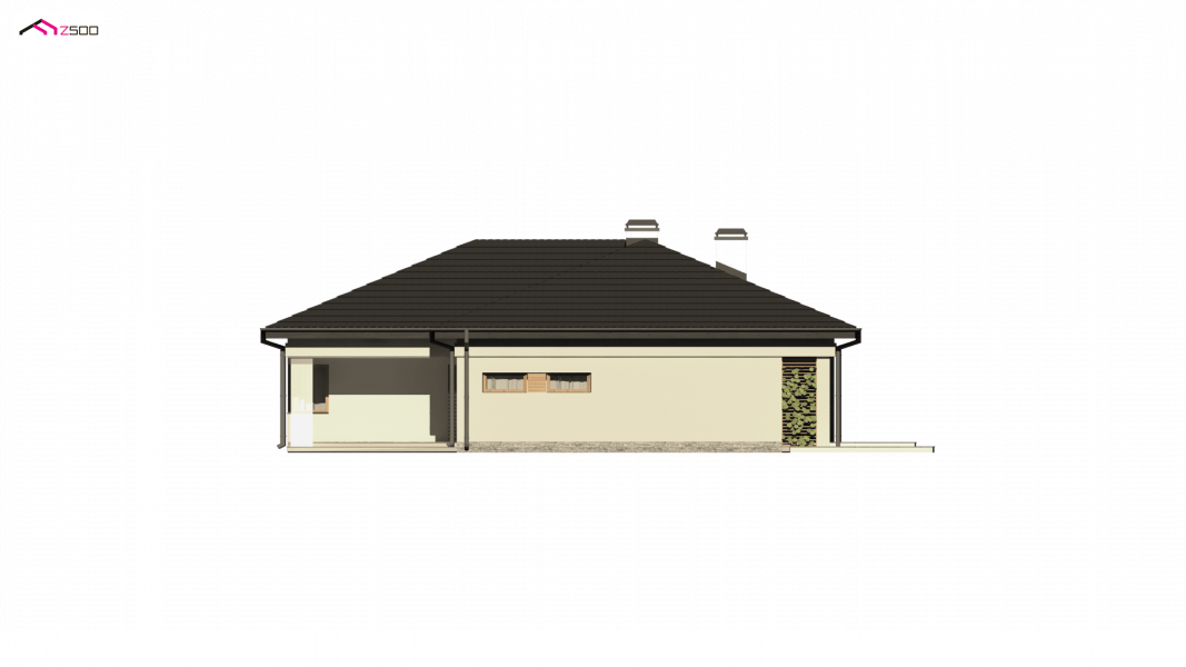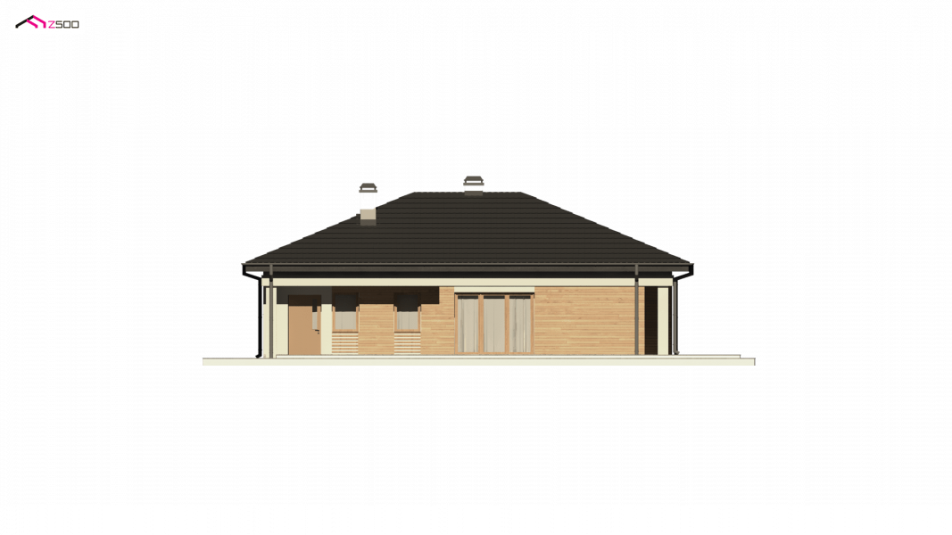 Projekt Z204 GP to funkcjonalny dom o programie użytkowym rozwiązanym w obrębie parteru. Prostą bryłę urozmaicono wysuwając lewe skrzydło przed front. Okładziny z drewna i kamienia na elewacjach nadają mu nowoczesny charakter.