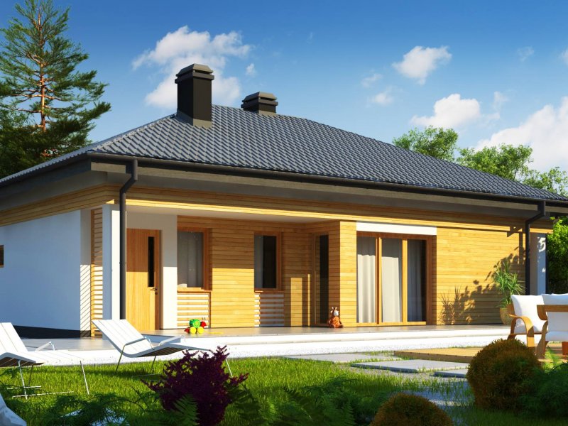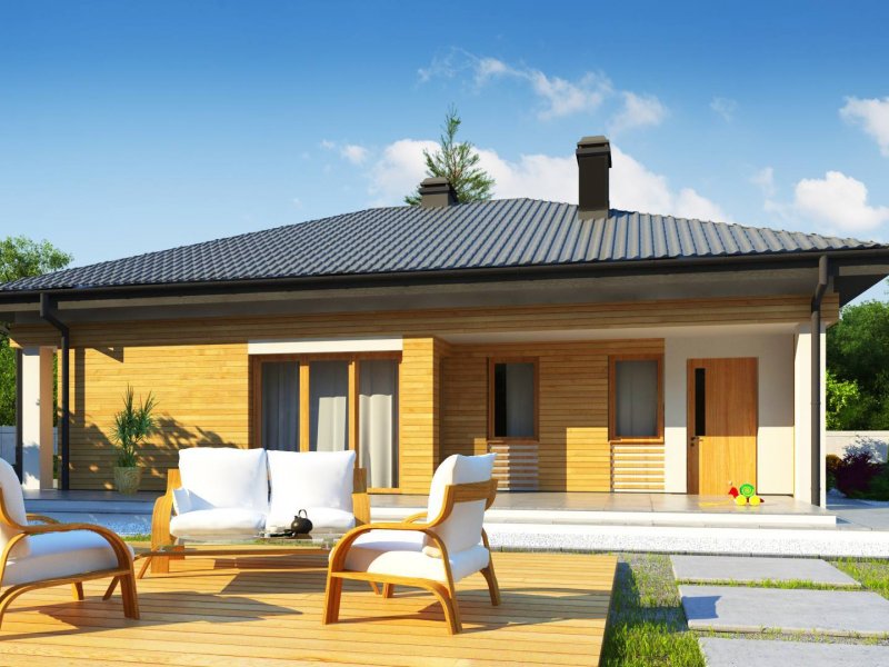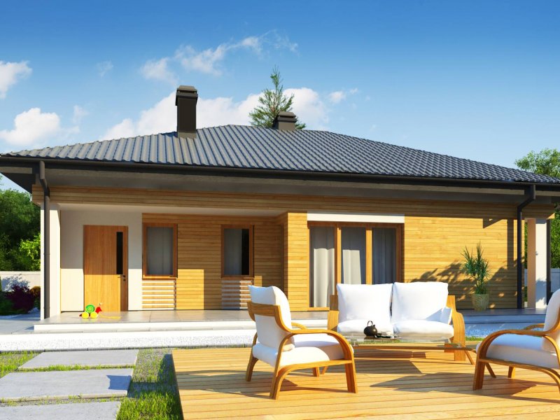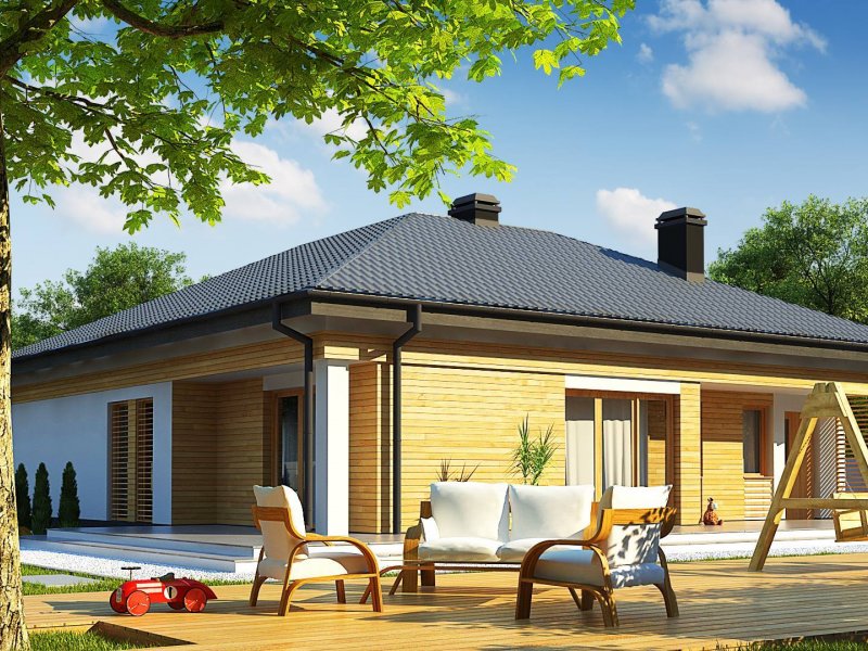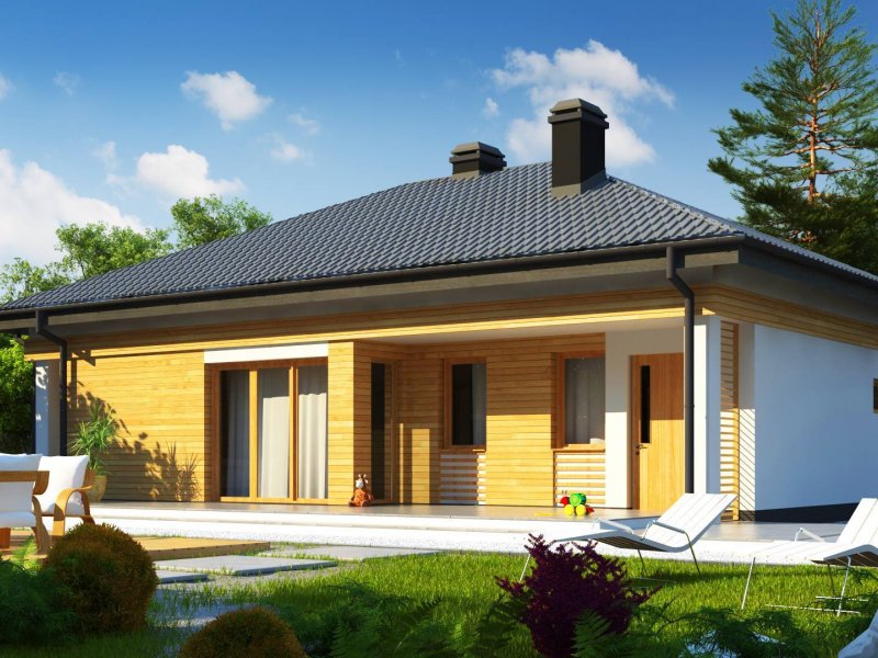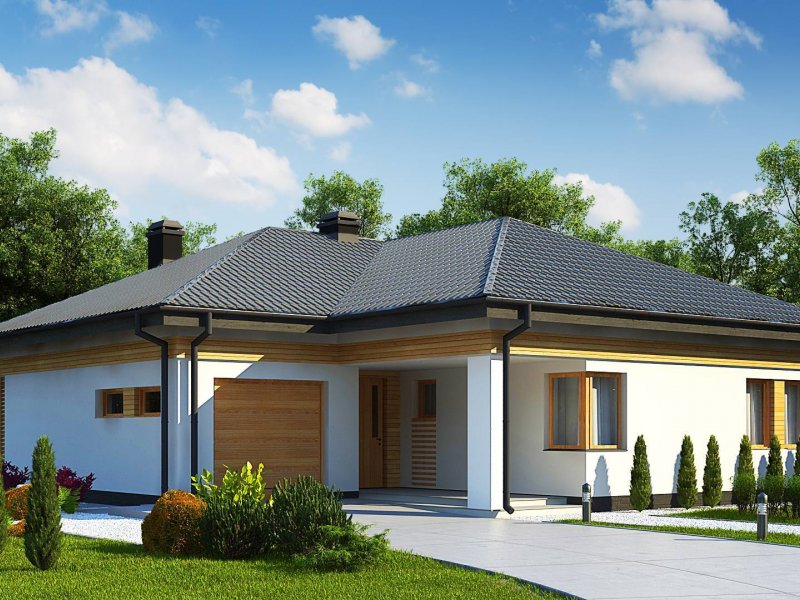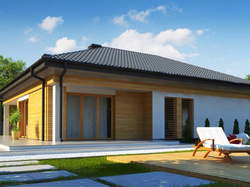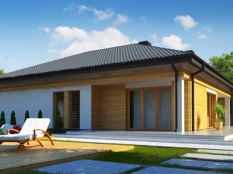 Projekt Z204 GP to funkcjonalny dom o programie użytkowym rozwiązanym w obrębie parteru. Prostą bryłę urozmaicono wysuwając lewe skrzydło przed front. Okładziny z drewna i kamienia na elewacjach nadają mu nowoczesny charakter.