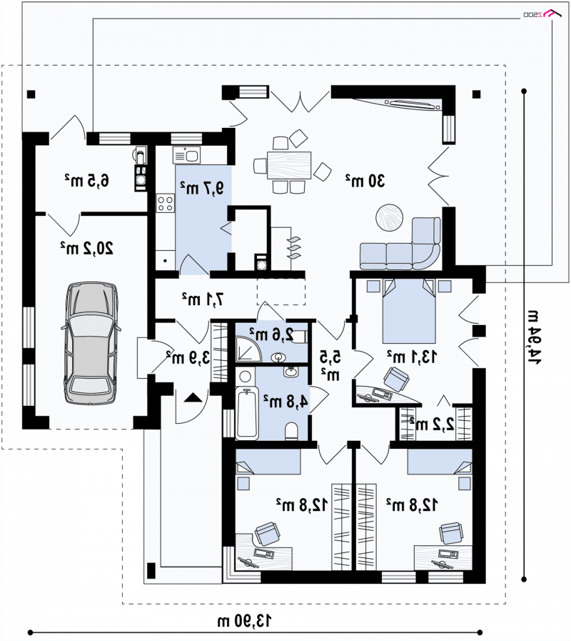 Z204 GP to projekt domu parterowego z poddaszem nieużytkowym, które ze względu na dość wygodną wysokość można zaadaptować na dodatkowe pomieszczenia.