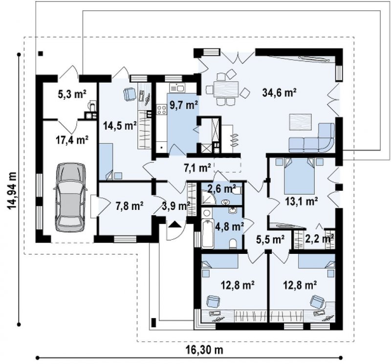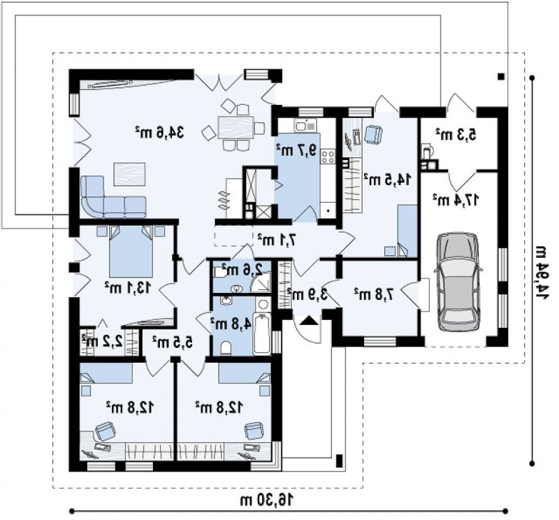 Wariant projektu Z204 ze zmianą układu pomieszczeń.