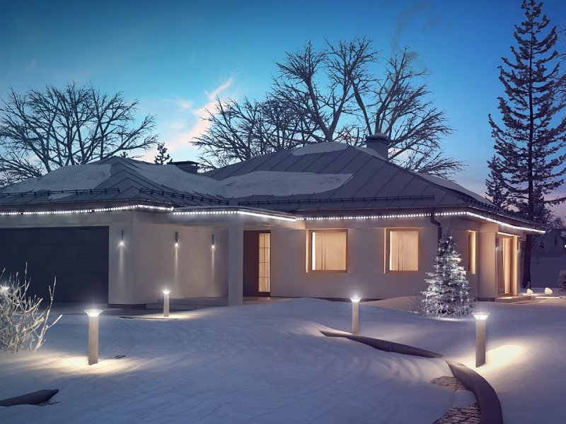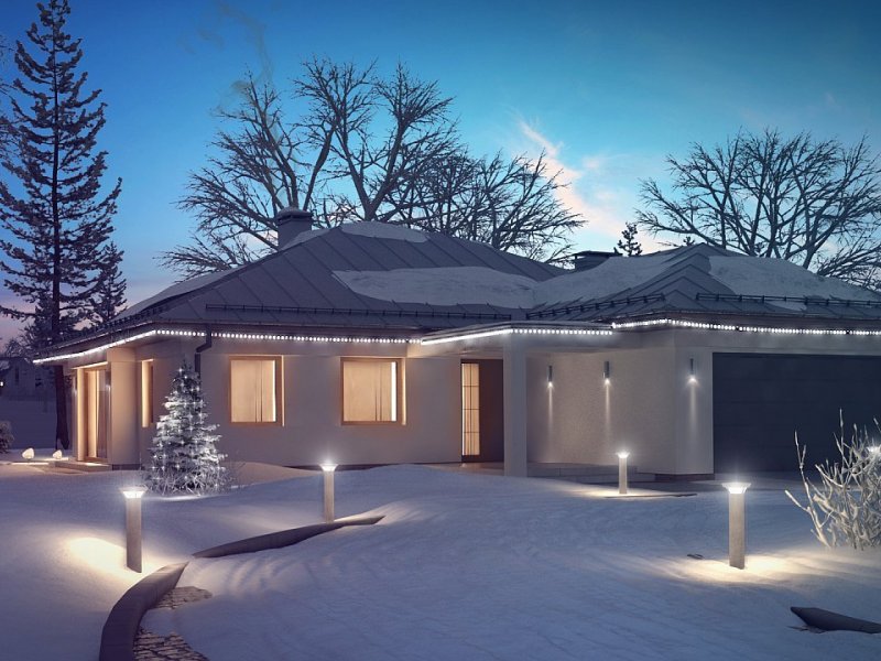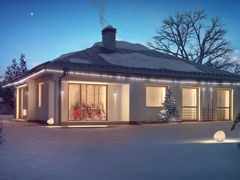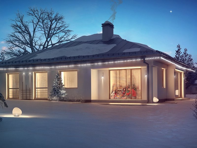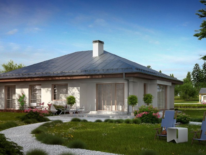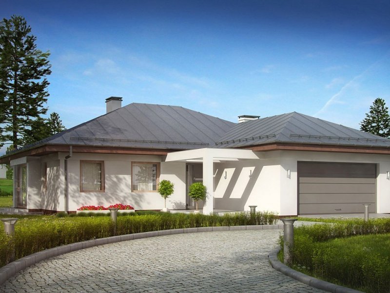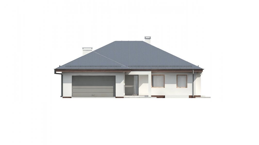 Z207 to dom parterowy z frontowym wjazdem do garażu. Nowoczesna i charakterystyczna, stonowana kolorystyka elewacji sprawia, że dom jest elegancki i przytulny.
