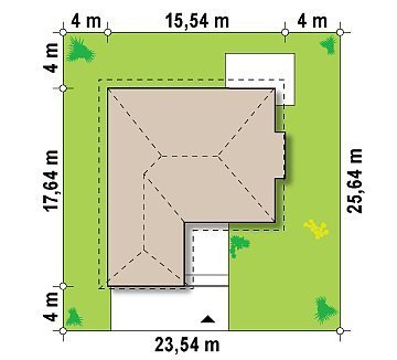 - Min. wymiary działki 25.64x23.54 m