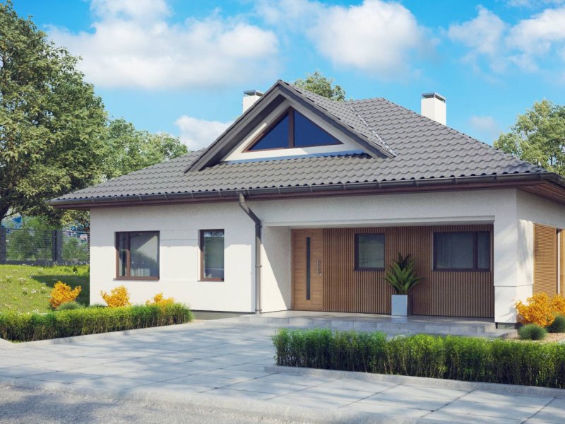 Z230 to praktyczny i bardzo przestrony dom z możliwością zaadoptowania poddasz. Bryła ujmuje swą dokładnością i dbałością o detale. Zgrabny wykusz i delikatny podcień podkreślają przytulny wyraz domu.