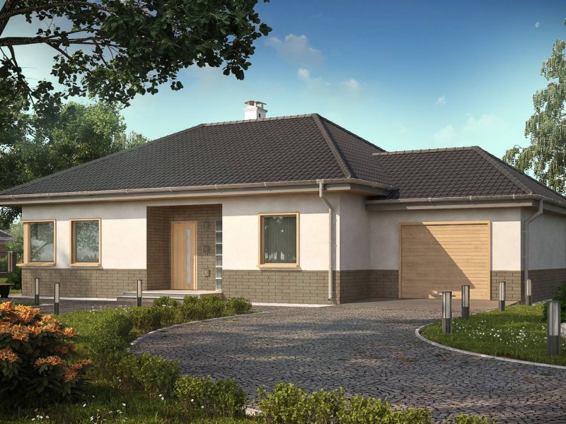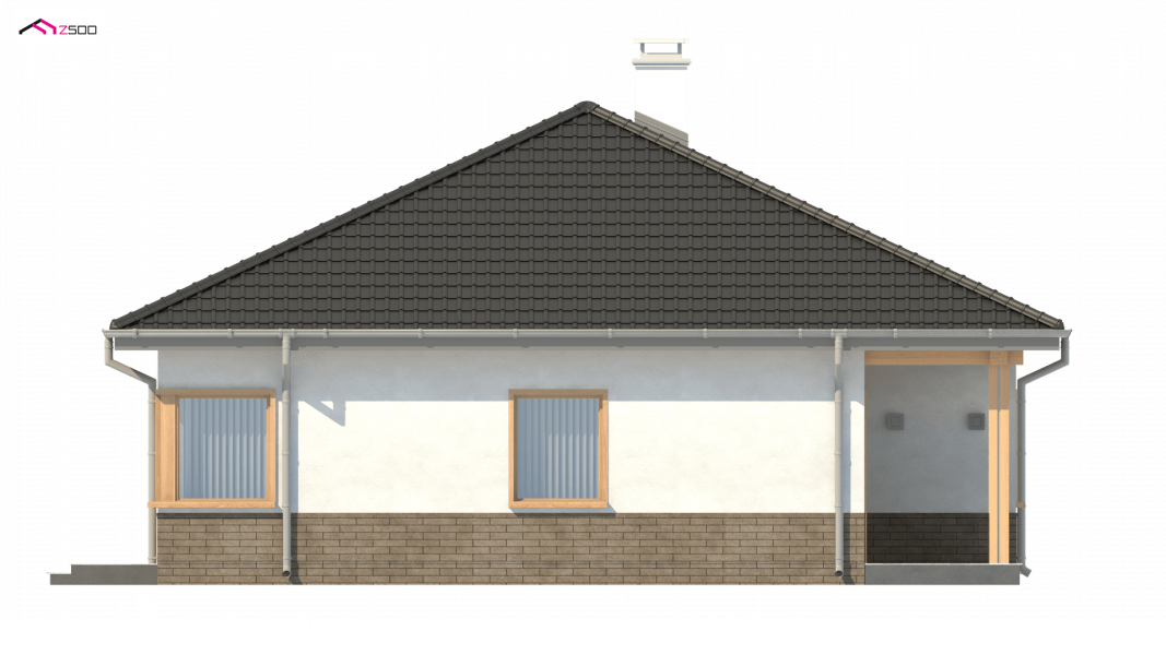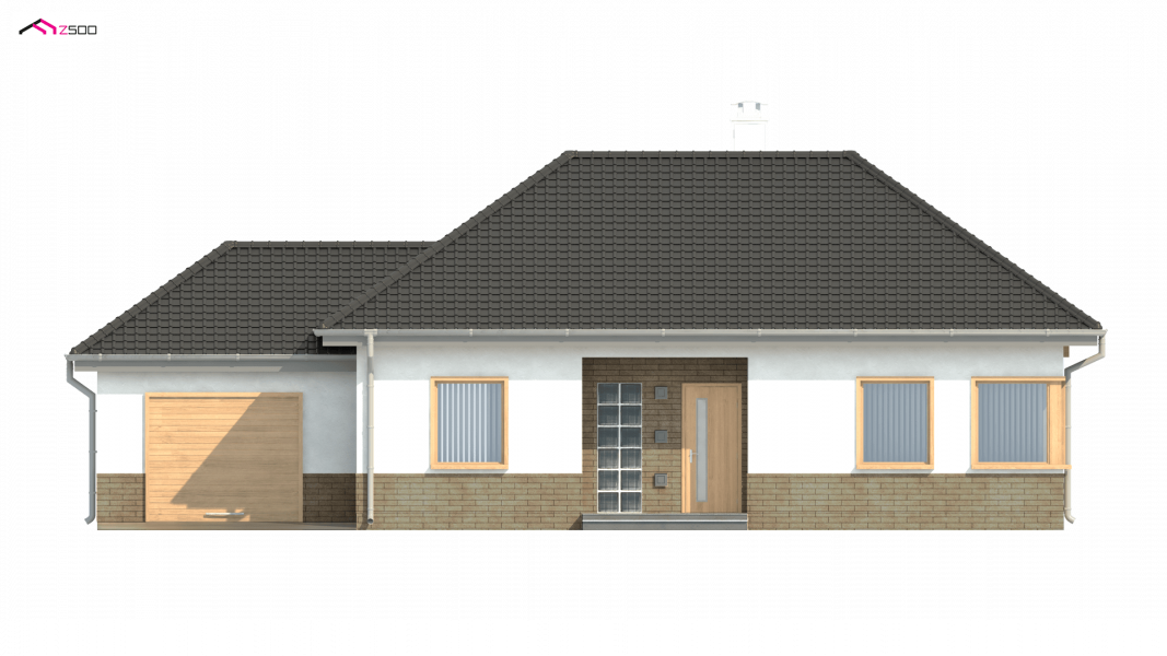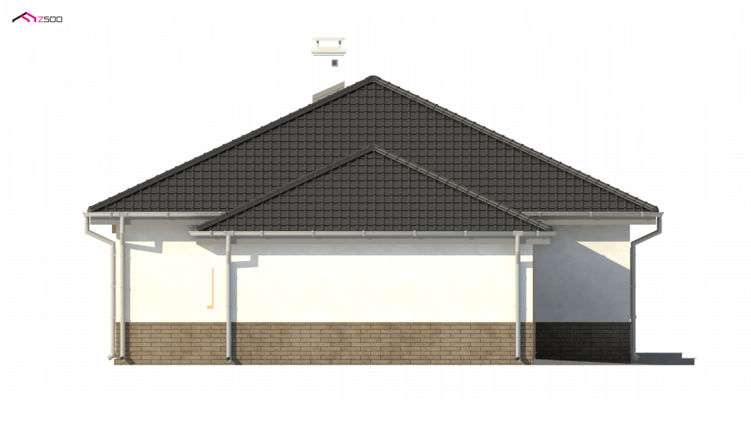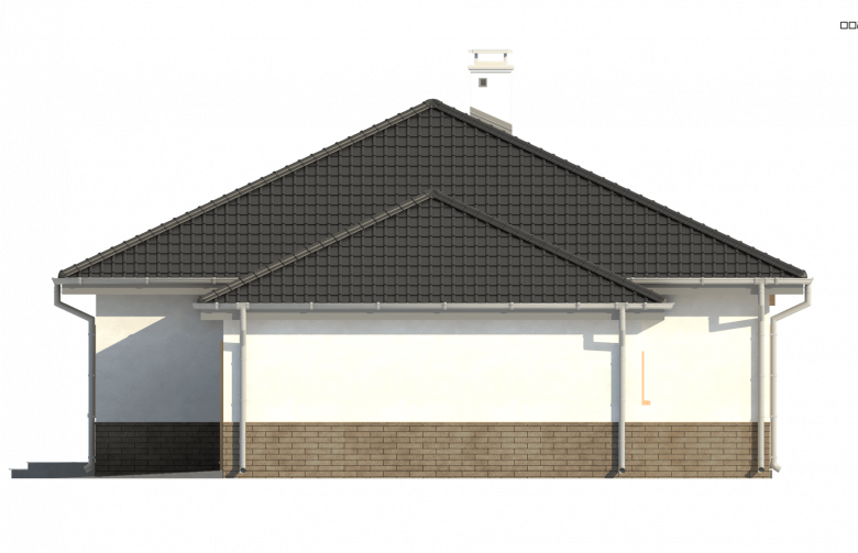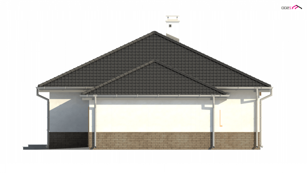 Wariant domu z garażem po lewej stronie (pow 29,15m2). Garaż jest dodatkowo poszerzony (szer. 4,10m); przewidziano w nim przestrzeń gospodarczą. Istnieje możliwość zrobienia przejścia bezpośrednio z garażu do domu kosztem pomniejszenia łazienki lub sypialni.