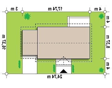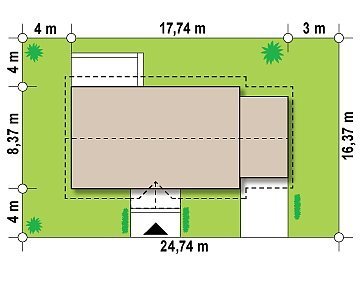 - Min. wymiary działki 16.37x24.64 m