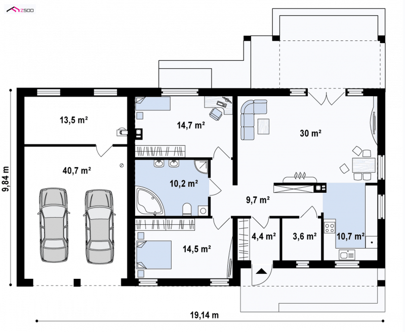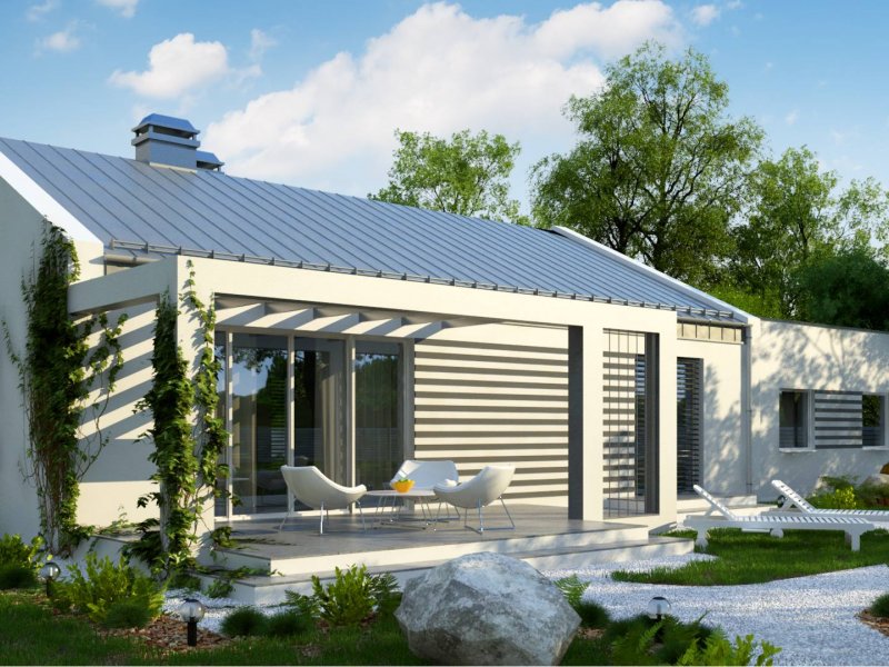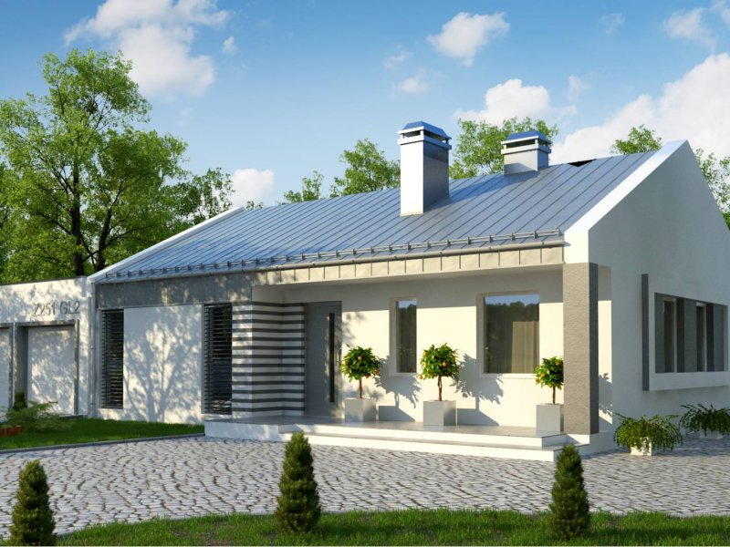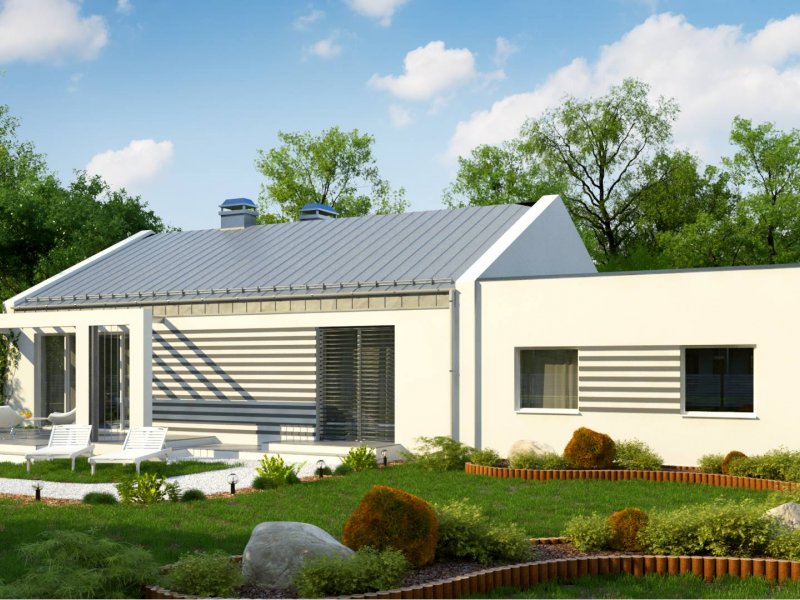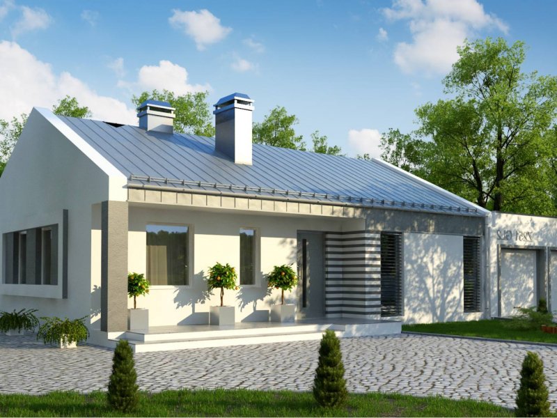 Dach: pokrycie dachówką lub blachodachówką bądź blachą.