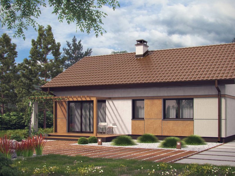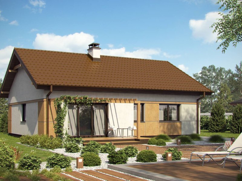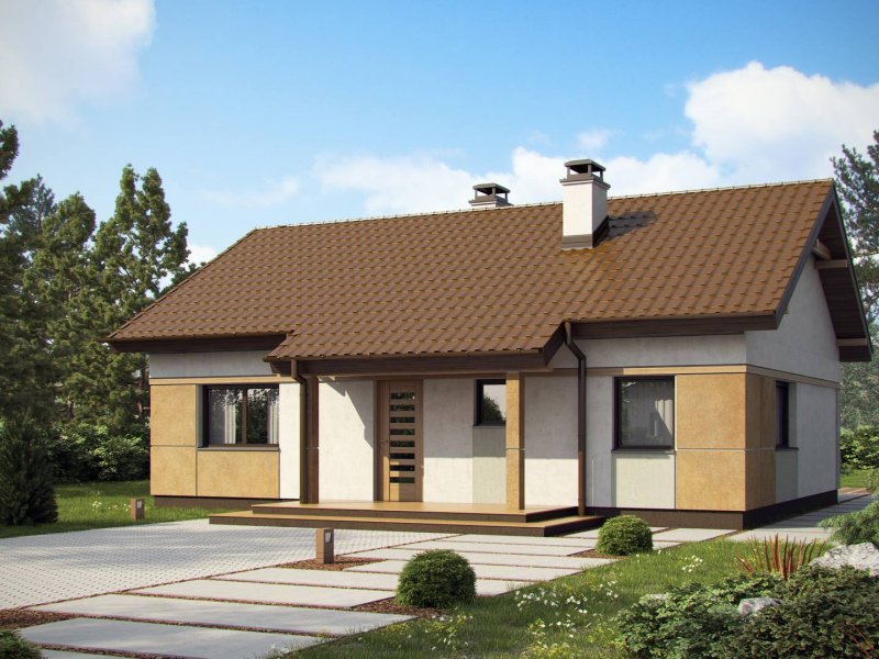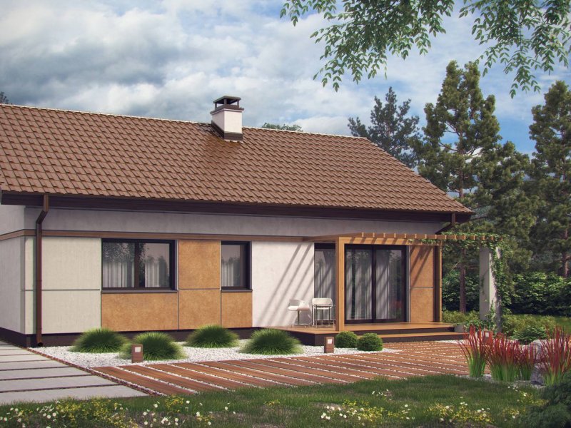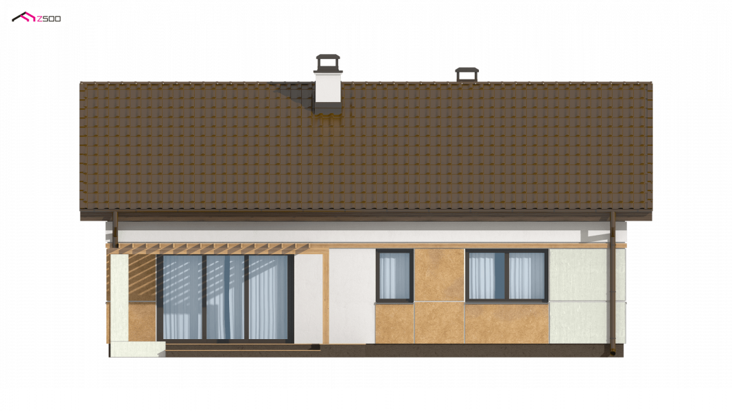Z253 to zgrabny dom parterowy o wielu możliwościach aranżacji. Prosta, zwarta bryła na rzucie prostokąta przekryta dwuspadowym dachem czyni go tanią i łatwą w realizacji inwestycją.