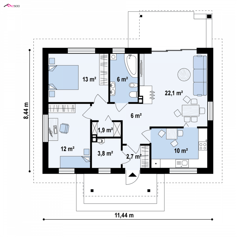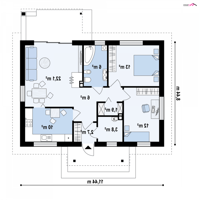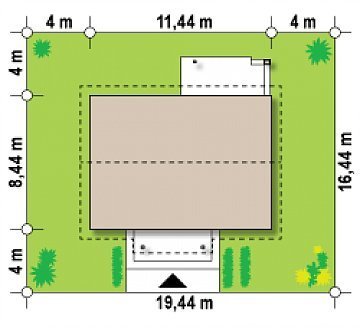 - Min. wymiary działki 16.44x19.44 m