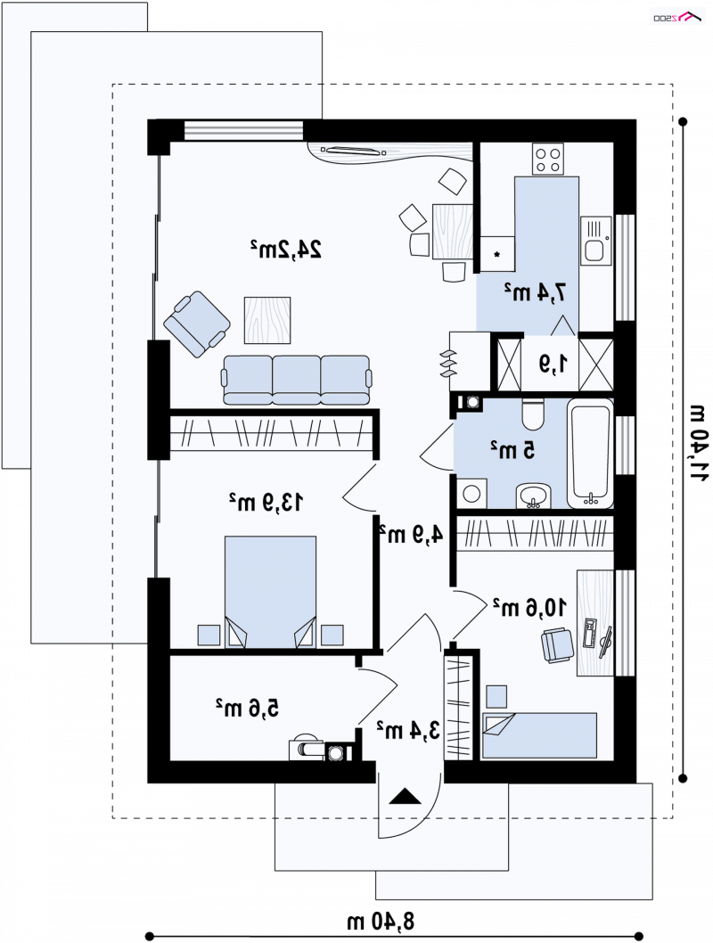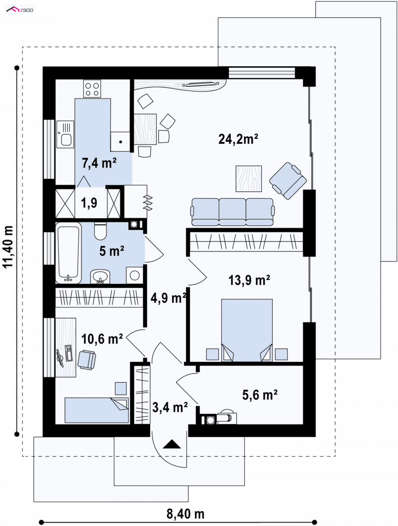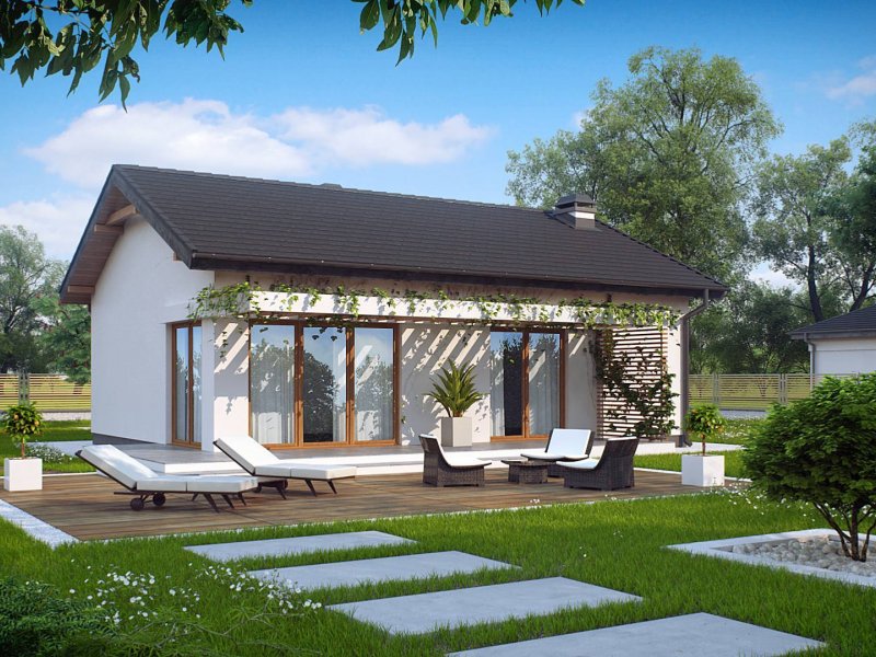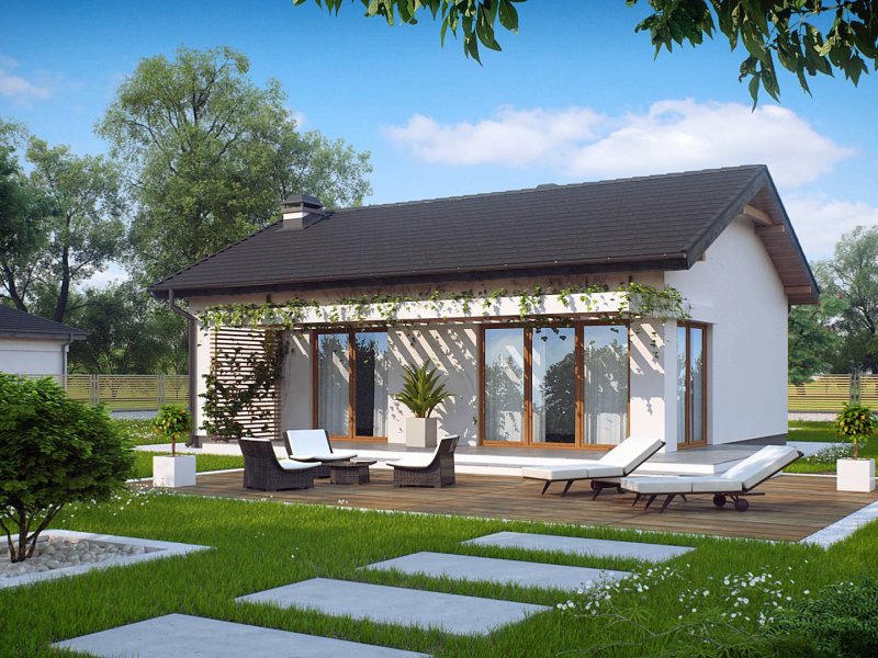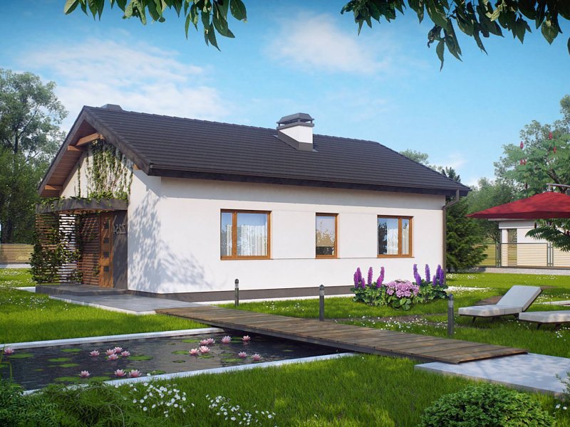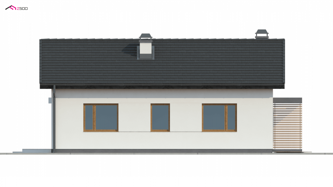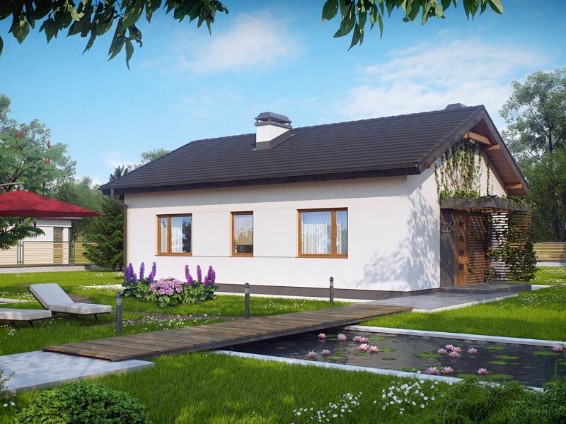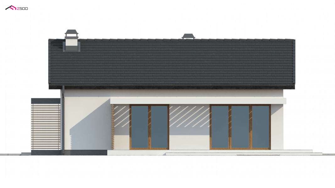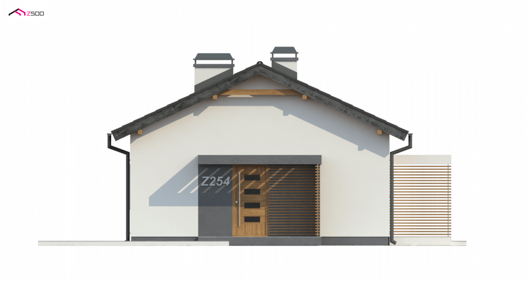 Z254 to zgrabny, dom parterowy z dwuspadowym dachem tani w budowie i utrzymaniu. Układ wnętrza umożliwia usytuowanie domu także na wąskiej działce lub bocznym wejściem do drogi.