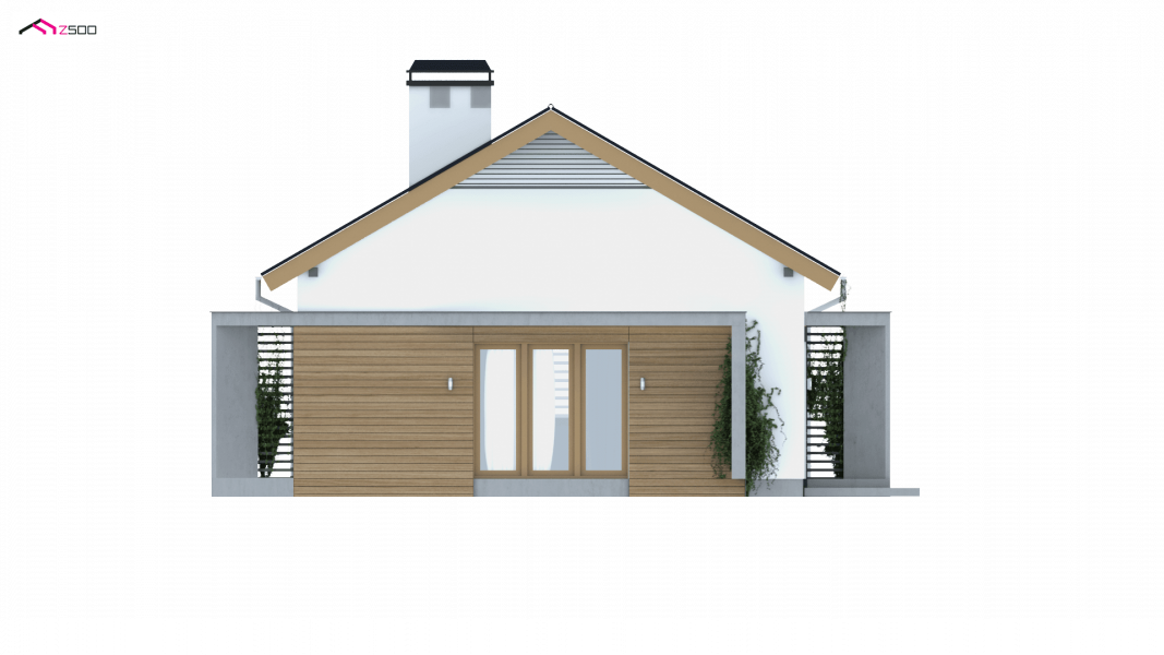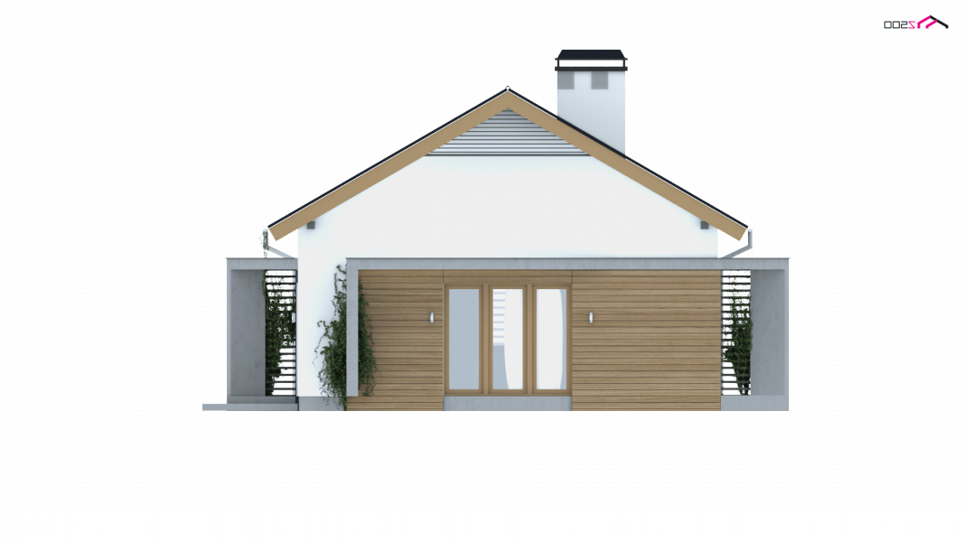 Z255 to mały, wąski dom o zwartej bryle przekrytej prostym dachem dwuspadowym. Plan budynku oparty jest na prostokącie, co umożliwia lokalizację domu na wąskich działkach. Elementem łamiący prostotę są ciekawe zadaszenia, nad wejściami oraz większe nad tarasem.
