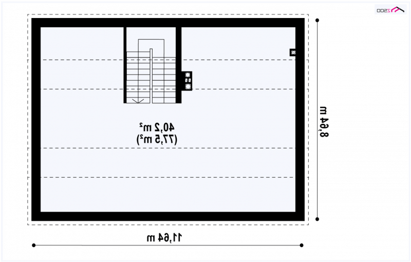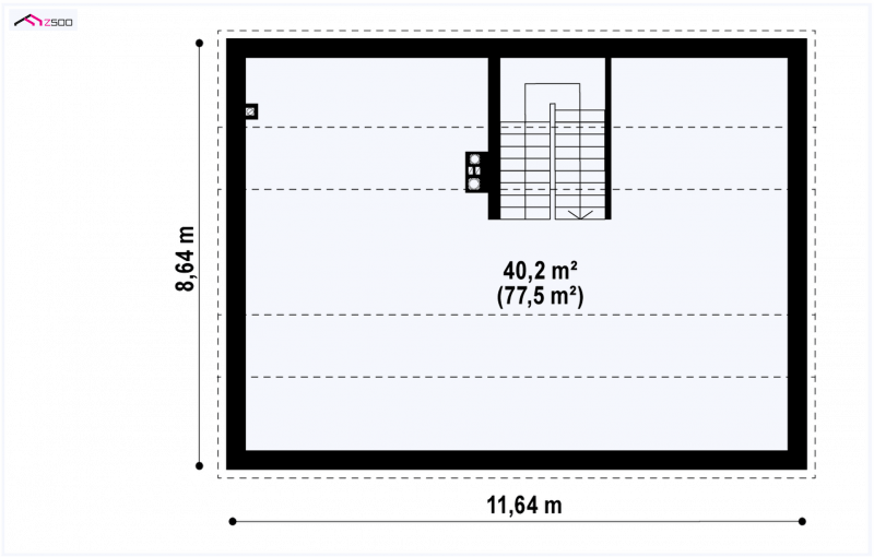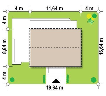 Parterowa bryła budynku przekryta dwuspadowymi dachami, kryje w sobie dodatkową przestrzeń strychu, który po zaadaptowaniu, może służyć jako poddasze użytkowe.