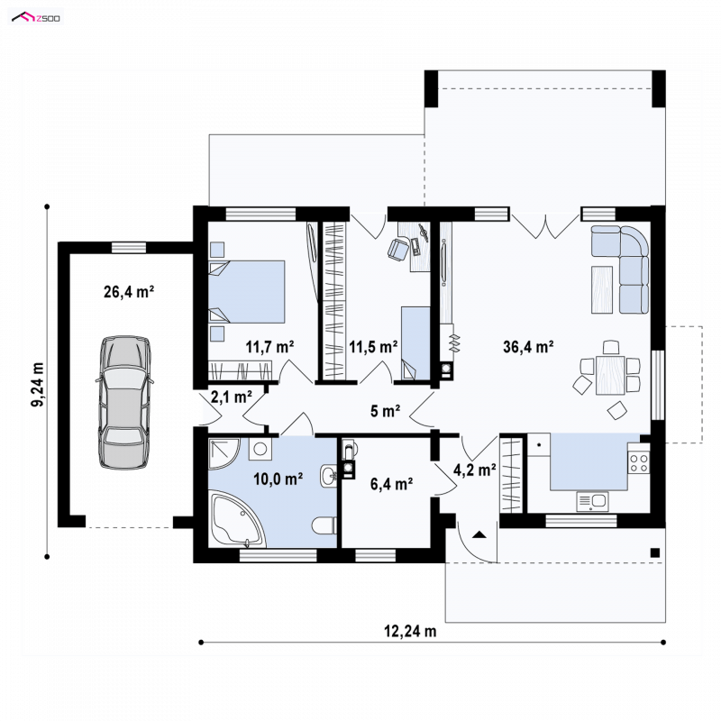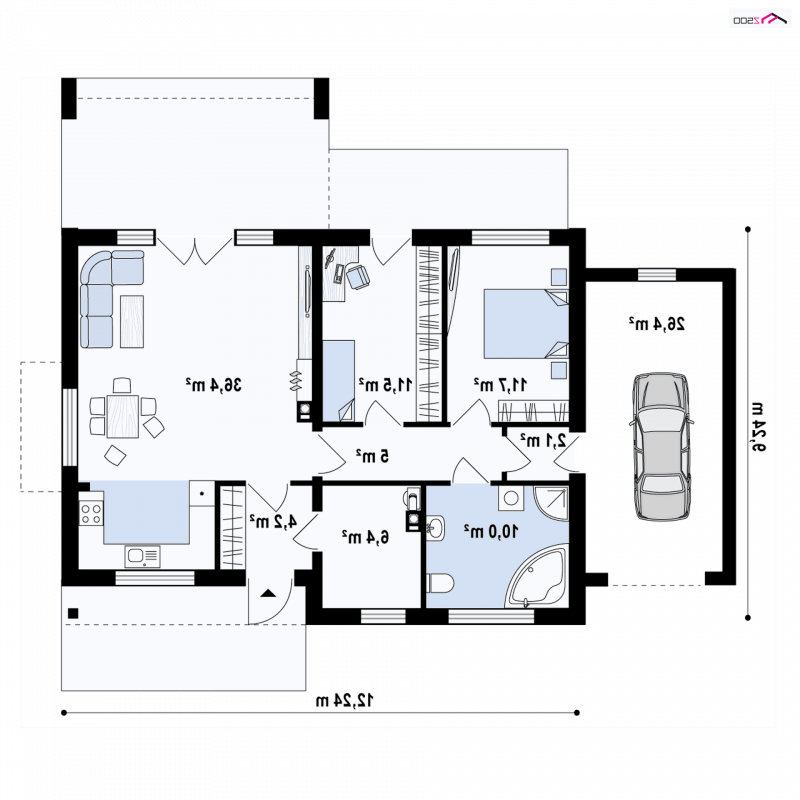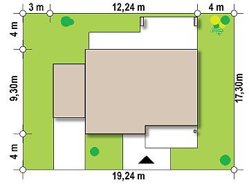 - Min. wymiary działki 17.24x23.44 m