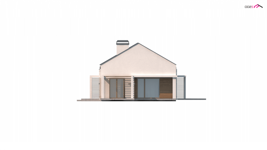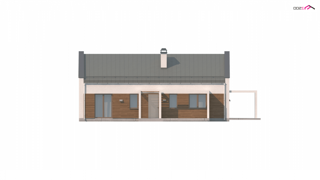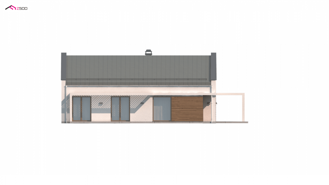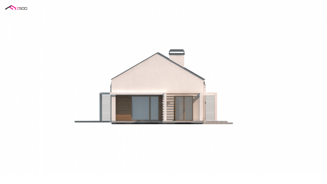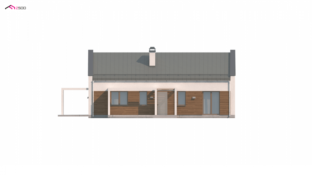 Projekt domu Z258 to propozycja dla inwestorów szukających projektu oryginalnego, ale jednocześnie nawiązującego do tradycji. Pozbawiony okapów dwuspadowy dach i nieco podniesione w stosunku do niego ściany szczytowe eksponują prosty, geometryczny kształt bryły. Od frontu urozmaica ją drewniana pergola, będąca jednocześnie zadaszeniem podestu wejściowego, a z boku pergola płynnie przechodząca w zadaszenie kuchni i jadalni.