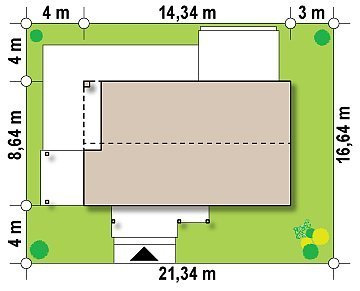 - Min. wymiary działki 16.64x21.34 m