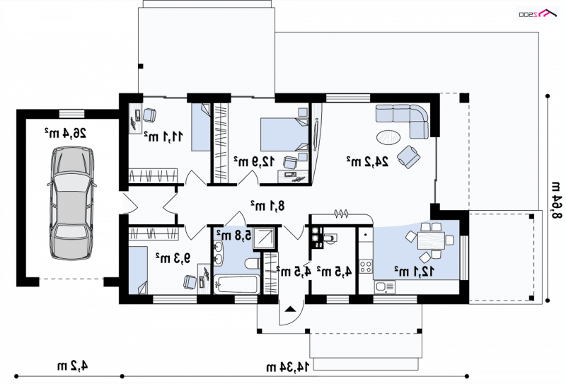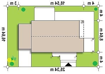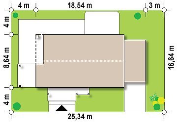 - Min. wymiary działki 16.64x25.54 m