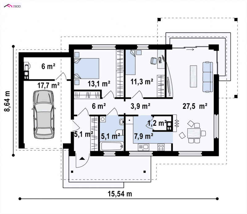 Z259 to wyjątkowy projekt ujmujący swą delikatnością i naturalnością . Jest idealną propozycją dla osób ceniących funkcjonalny rozkład pomieszczeń na jednym poziomie.