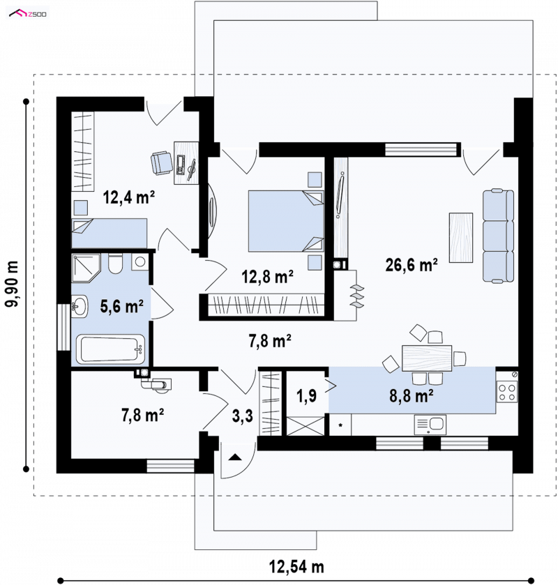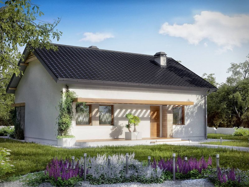 Z261 to komfortowy dom parterowy o prostej i zgrabnej bryle, przekrytej dachem dwuspadowym.