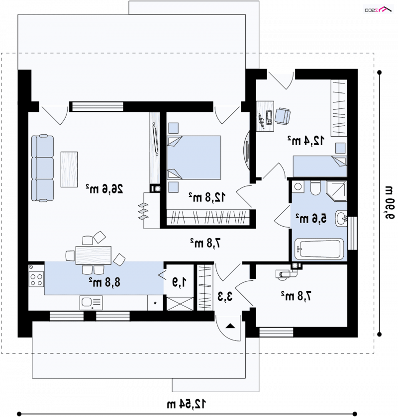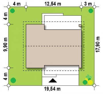 - Min. wymiary działki 17.90x19.54 m