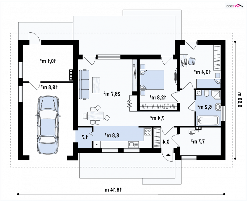 - Min. wymiary działki 17.90x24.14 m