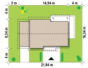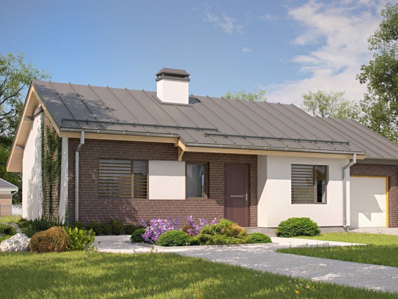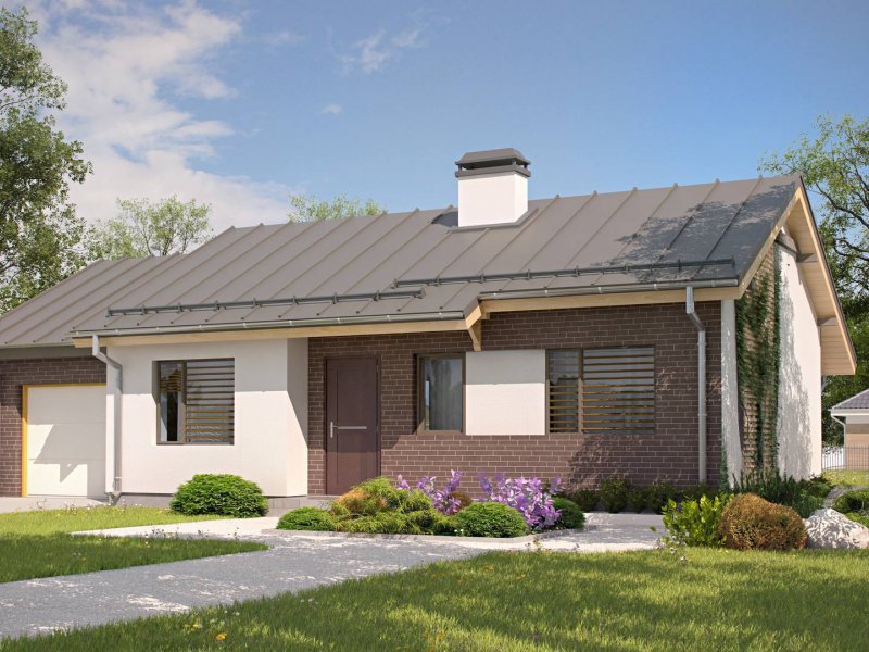 Projekt Z262 GL to mały dom parterowy, zgrabny i zwarty w formie. Dużą zaletą projektu jest oszczędna, prosta bryła z dwuspadowym dachem.