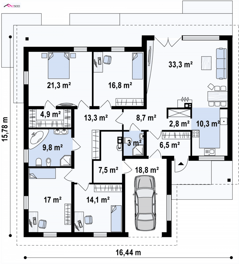 Projekt Z268 to idealna propozycja dla osób szukających funkcjonalnego domu parterowego.