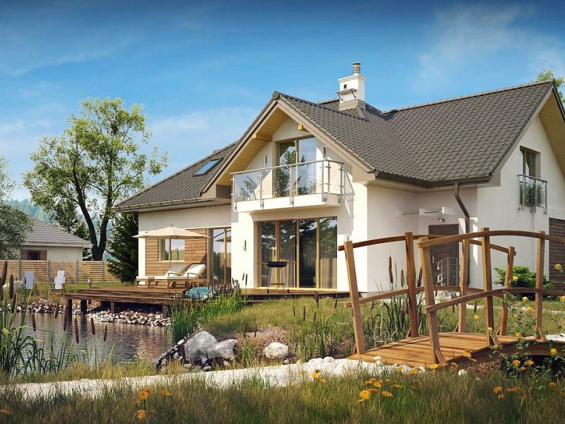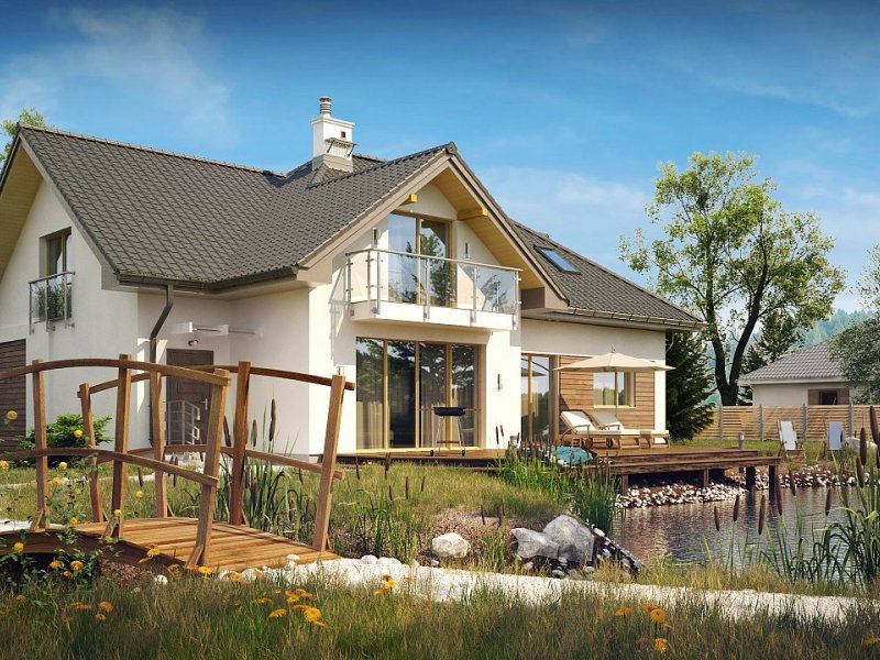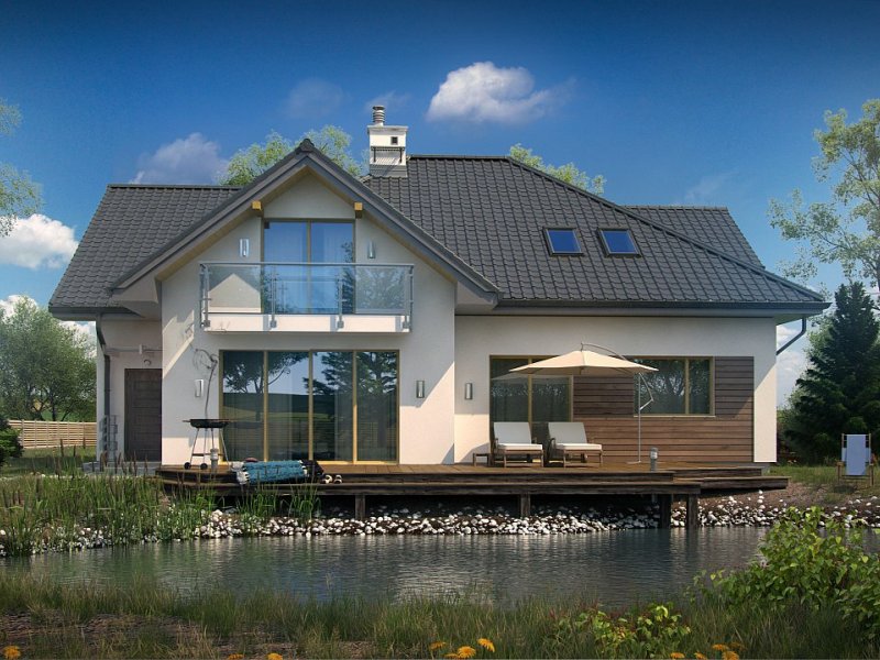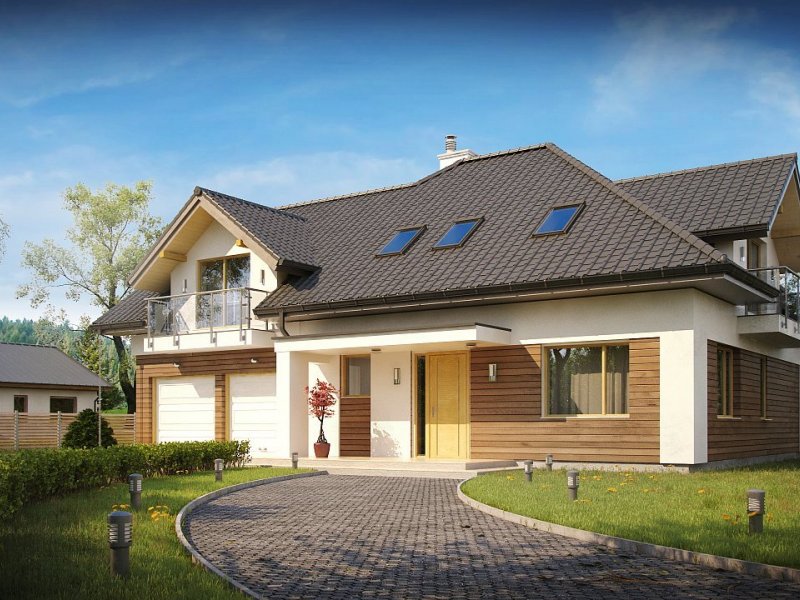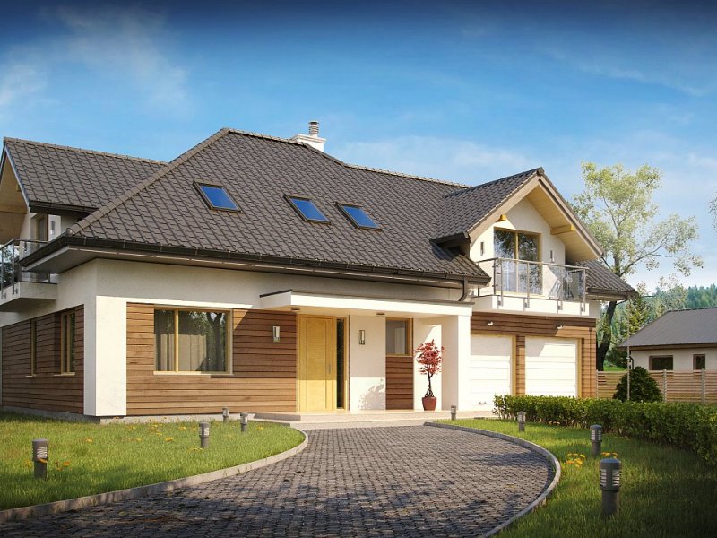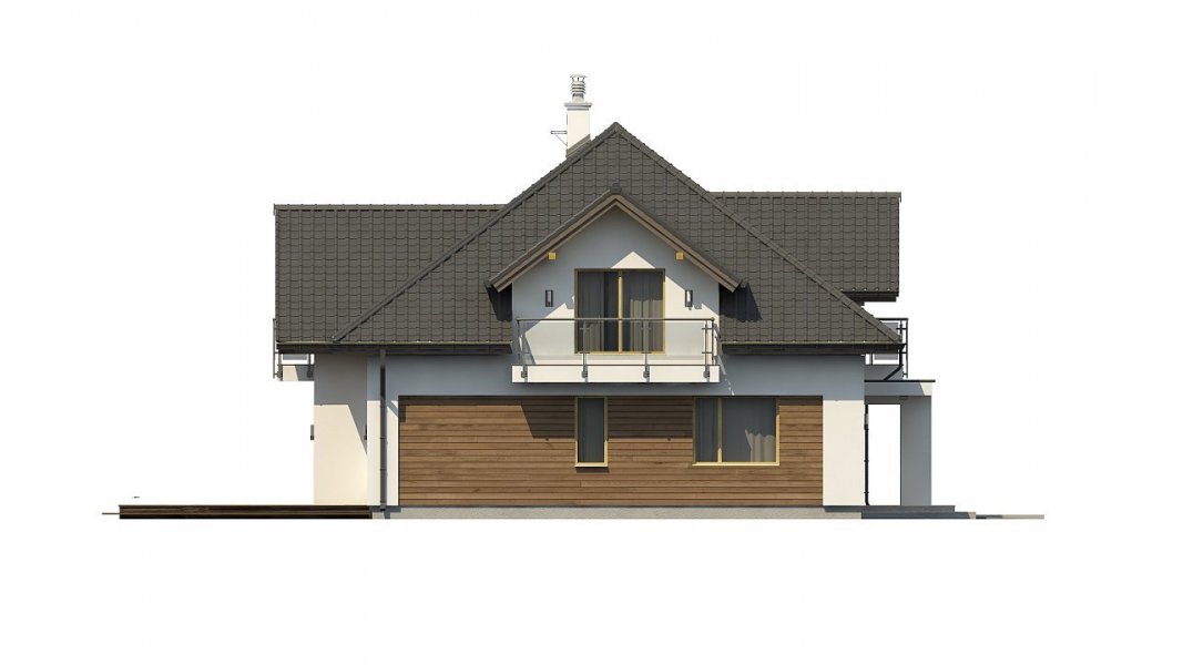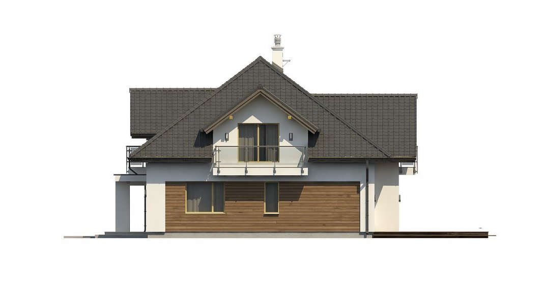 Z272 to wyjątkowy projekt domu z poddaszem użytkowym i garażem dwustanowiskowym. Starannie dobrane dodatki oraz drewniane elementy elewacji nadają mu elegancki wygląd.