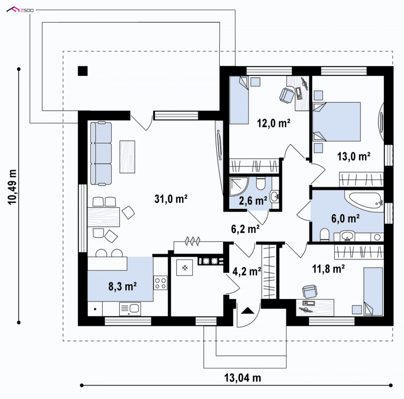 - Min. wymiary działki 18.49x21.04 m