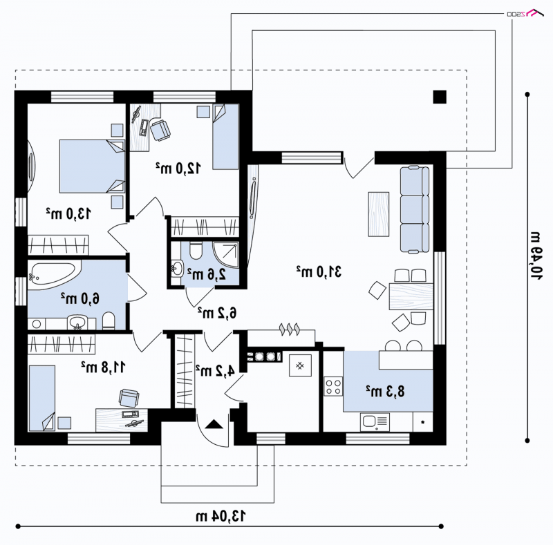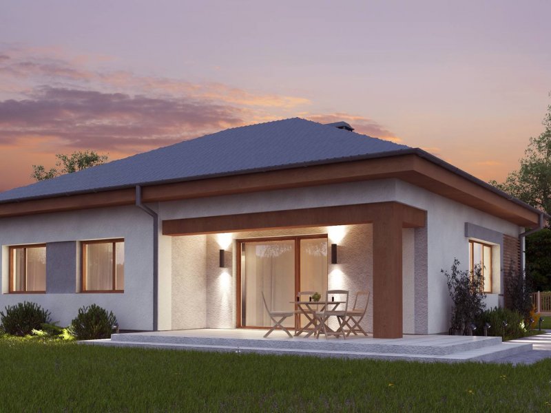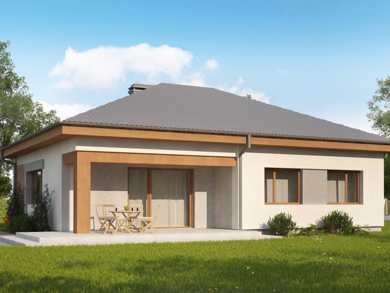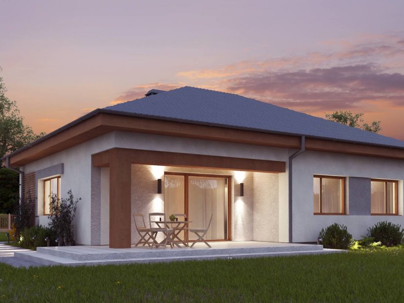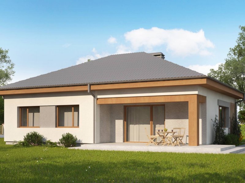 Wersja projektu poszerzona o 90cm. Kotłownia na ekogroszek oraz powiększony salon.