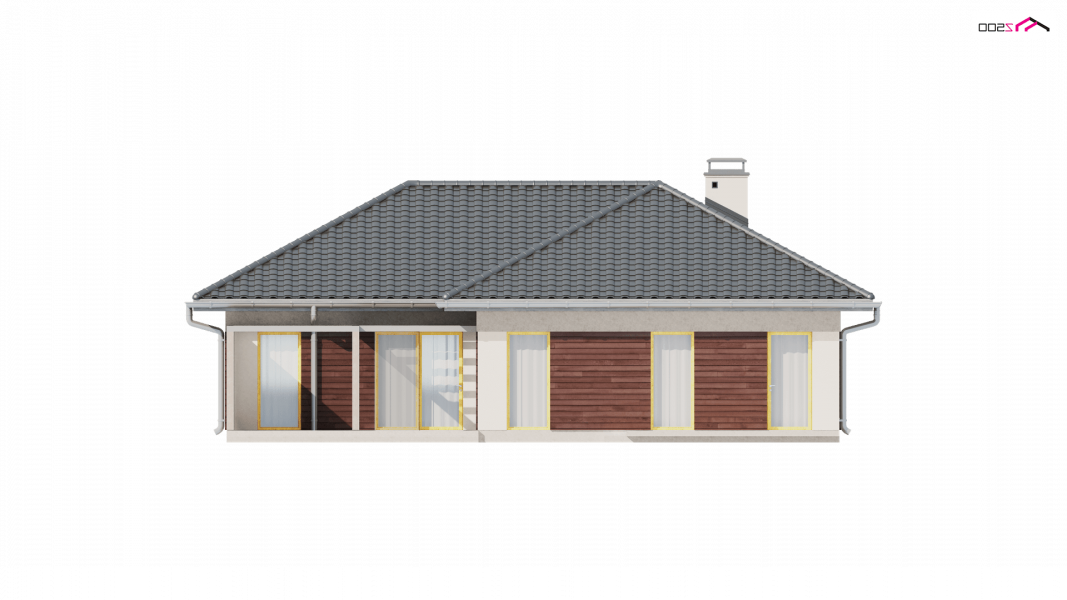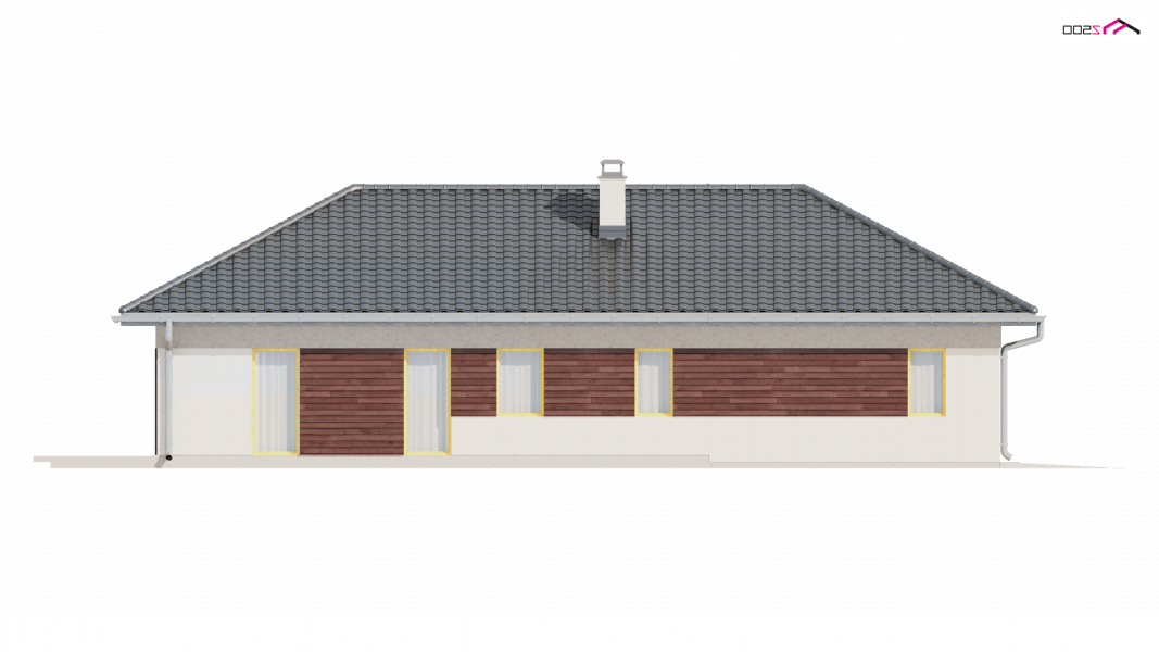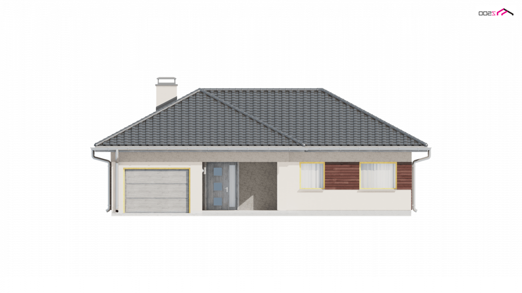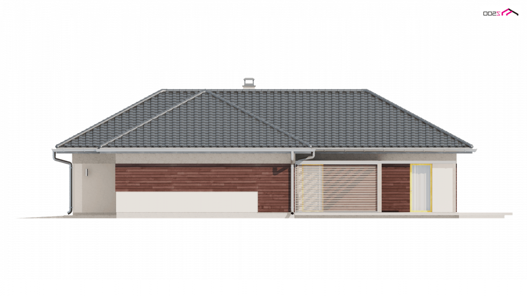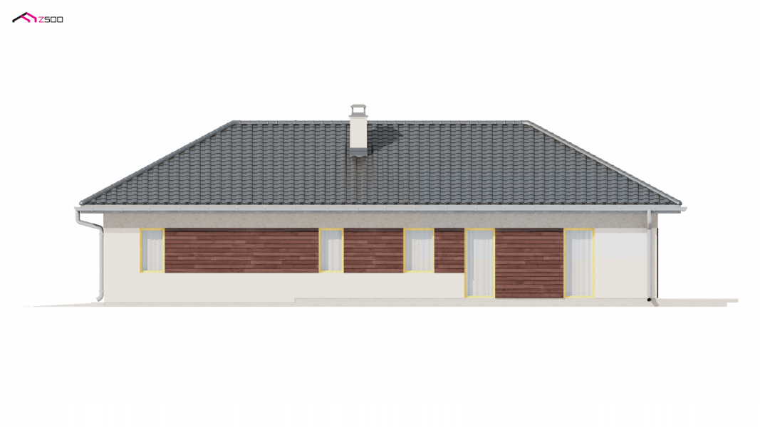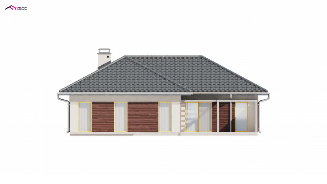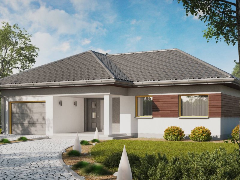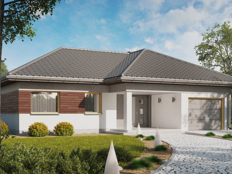 Z280 to projekt domu parterowego z garażem jednostanowiskowym od frontu. Elewacje wykończone zostały drewnianymi elementami co w połączeniu z popielatą dachówką nadało mu eleganckiego wyglądu.